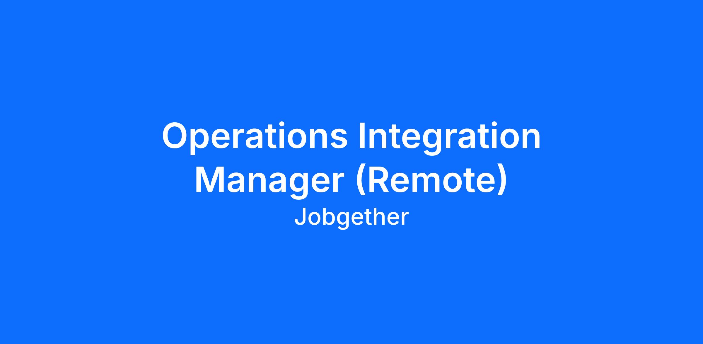 Operations Integration Manager (Remote)