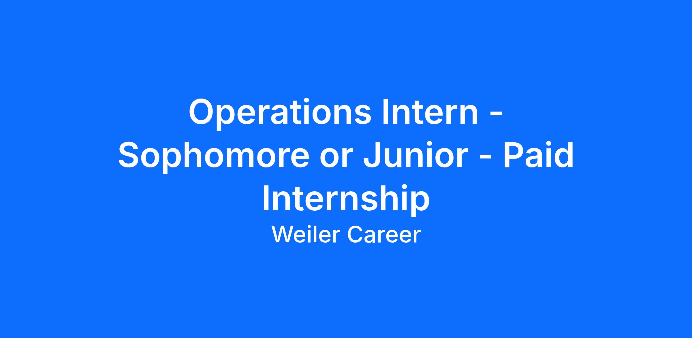 Internships can be structured as either an 8-12 week summer opportunity or Weiler will work with you to provide flexibility around your college class schedule. Housing is available on a limited basis. These are paid internships (rate commensurate with class year and prior internship experience).