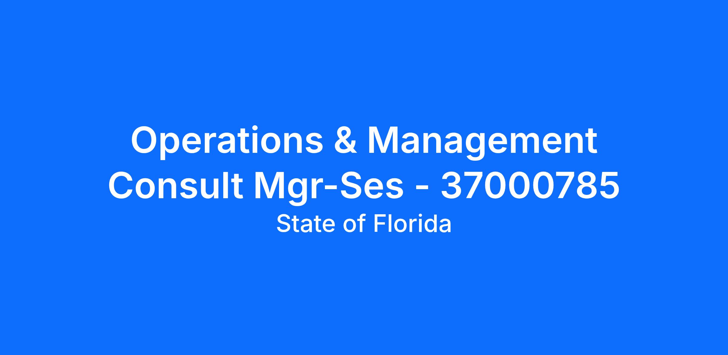 Working Title: OPERATIONS & MANAGEMENT CONSULT MGR-SES - 37000785