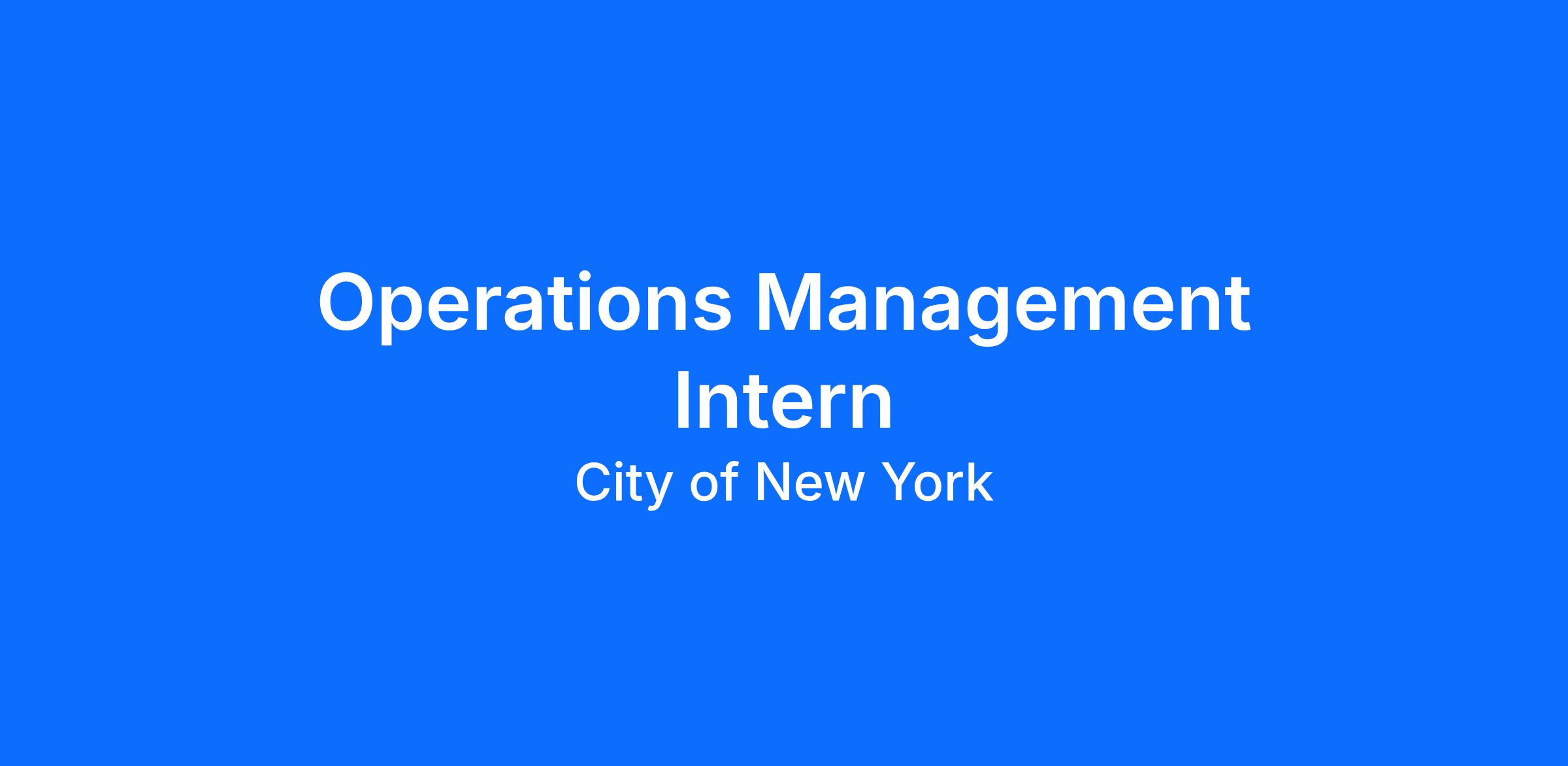 As an Operations Management Undergraduate Intern, you will be responsible for assisting with the Facilities Help Desk Team with monitoring help desk tickets to ensure work is being performed within adequate time frames. This internship offers a unique and excellent opportunity to gain hands on experience working alongside a team responsible for coordinating the commissioning and decommissioning of sites, including the relinquishment and/or transfer of furniture, equipment and personnel while ensuring a smooth transition at new locations. Additionally, as a member of the 2026, ACS Summer Internship Program cohort, you will participate in an enrichment program designed to fully engage students into the ACS and NYC government experience. Internship programming includes professional development workshops, lunch and learns, speaker events, NYC government tours, and networking opportunities.