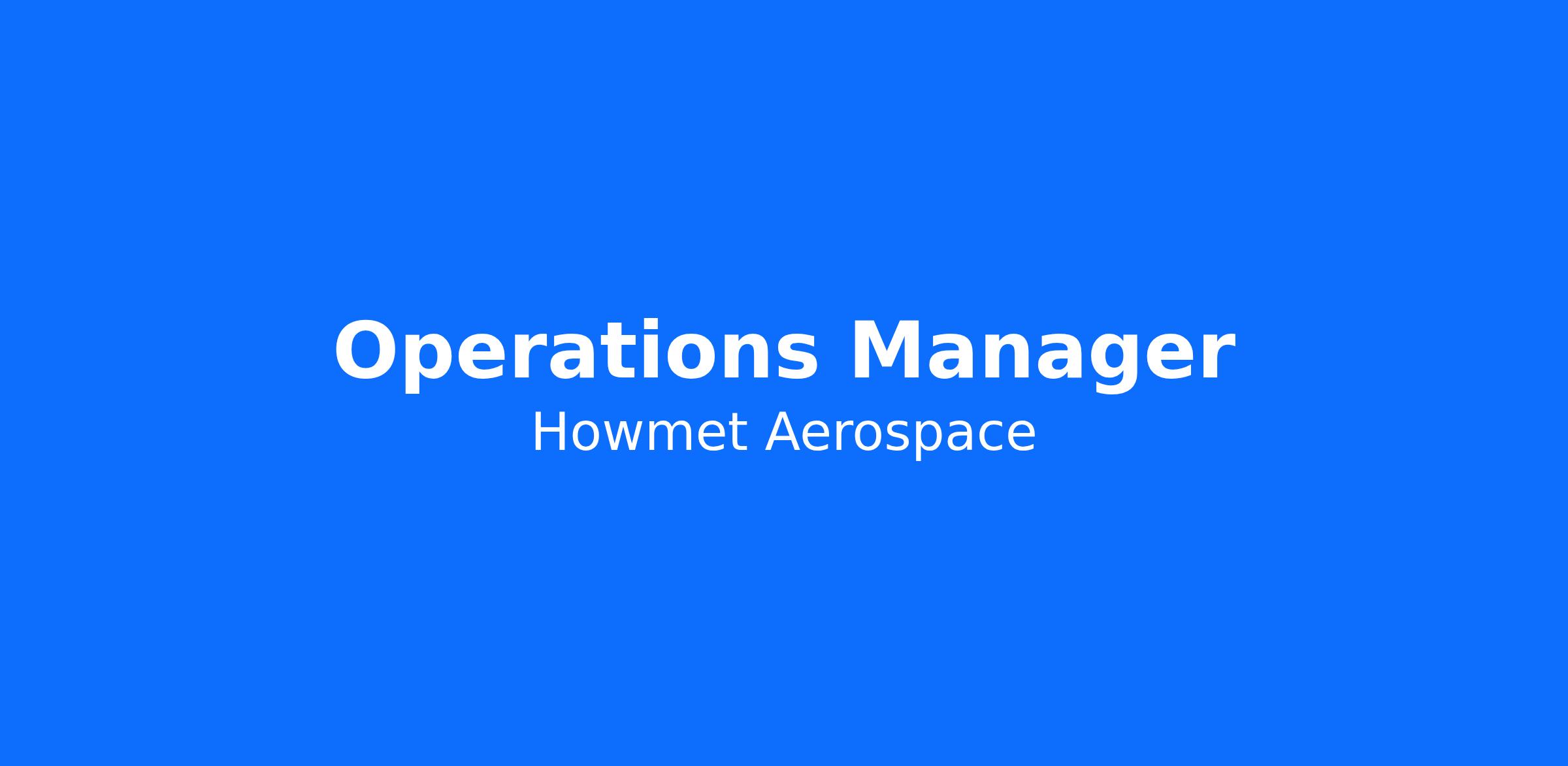 ResponsibilitiesLet Your Career Take Flight at Howmet Aerospace!