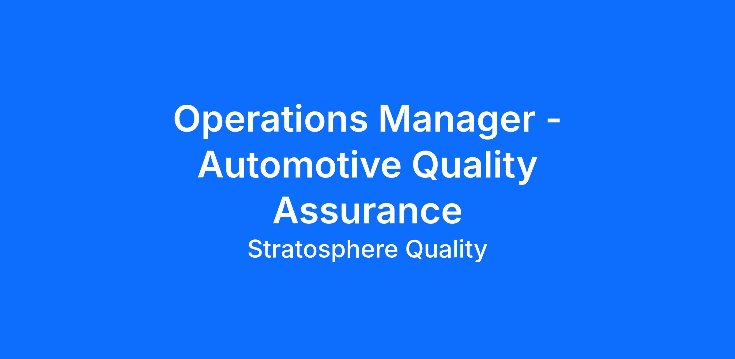 Operations Manager - Automotive Quality Assurance