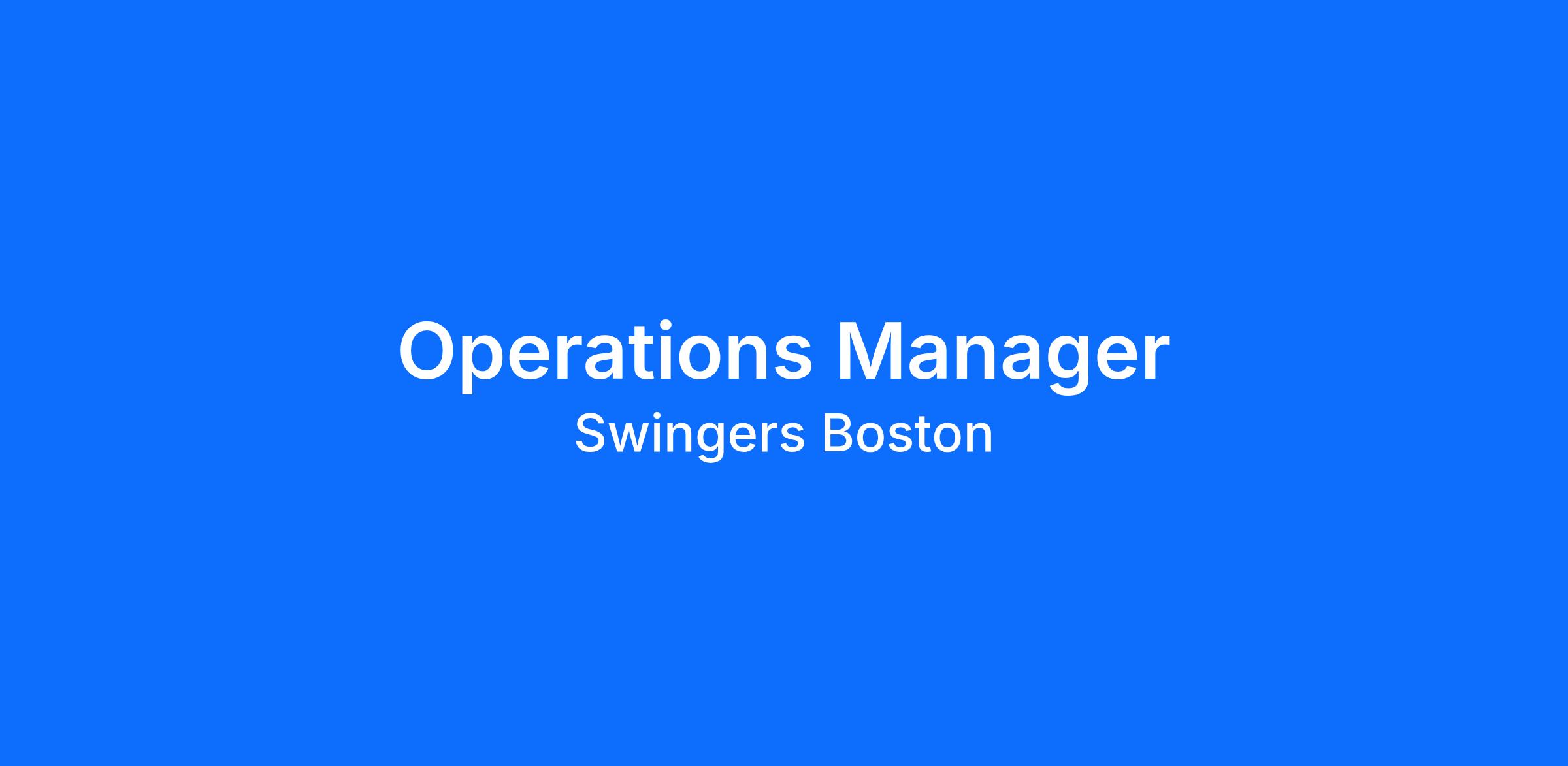 Swingers – the crazy golf club is looking for a Operations Manager to join our team in Boston! We offer excellent benefits and compensation of $75,000 - $90,000.