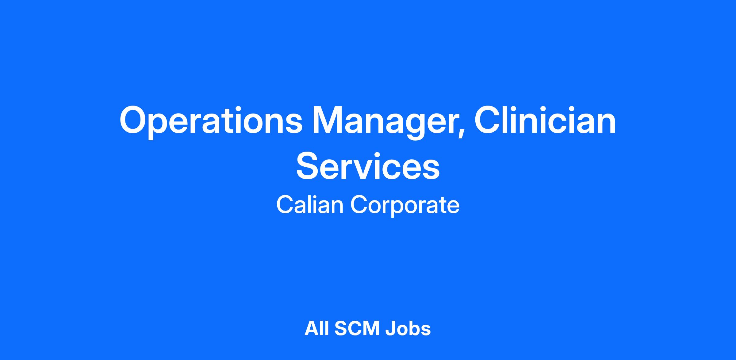 Job Title: Operations Manager, Clinician Services