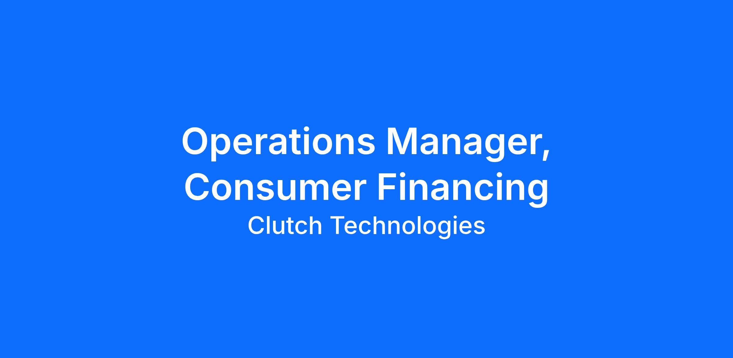We’re hiring an Operations Manager, Consumer Financing to help build and scale the operating engine behind Clutch’s lending program. This is a high-ownership, hands-on generalist role for someone who can run key processes, solve messy problems, and improve the system as we grow.