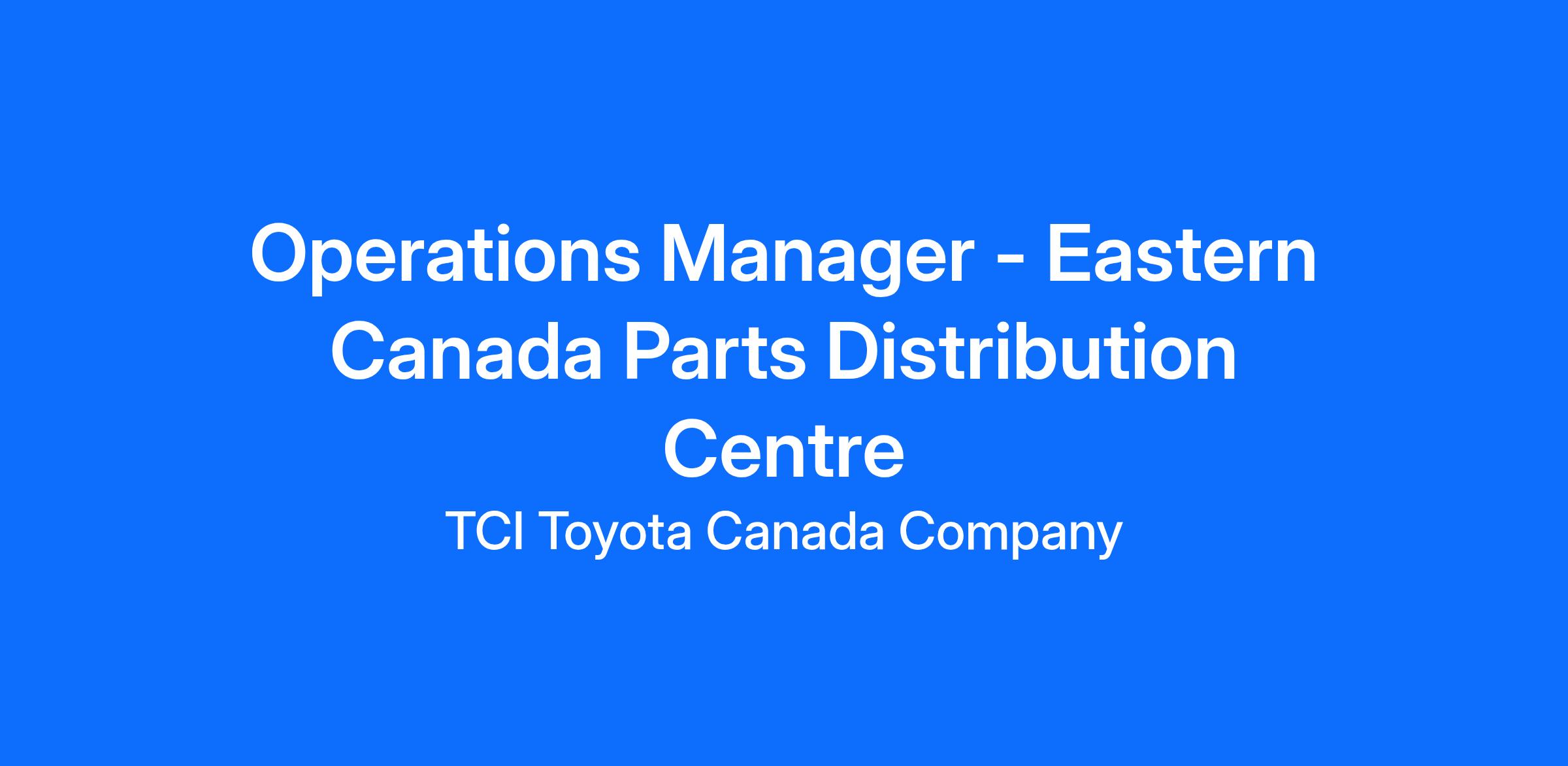 Operations Manager, Eastern Canada Parts Distribution Centre