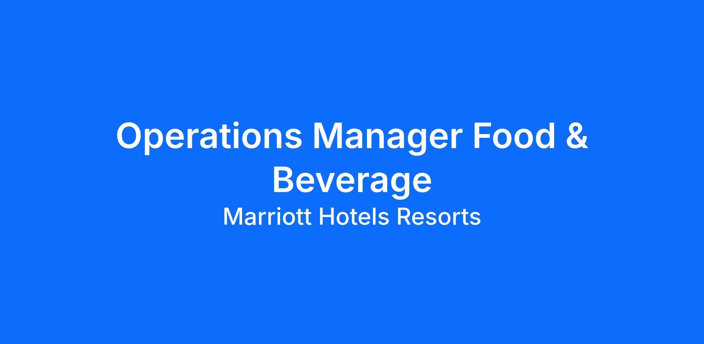 Operations Manager Food & Beverage