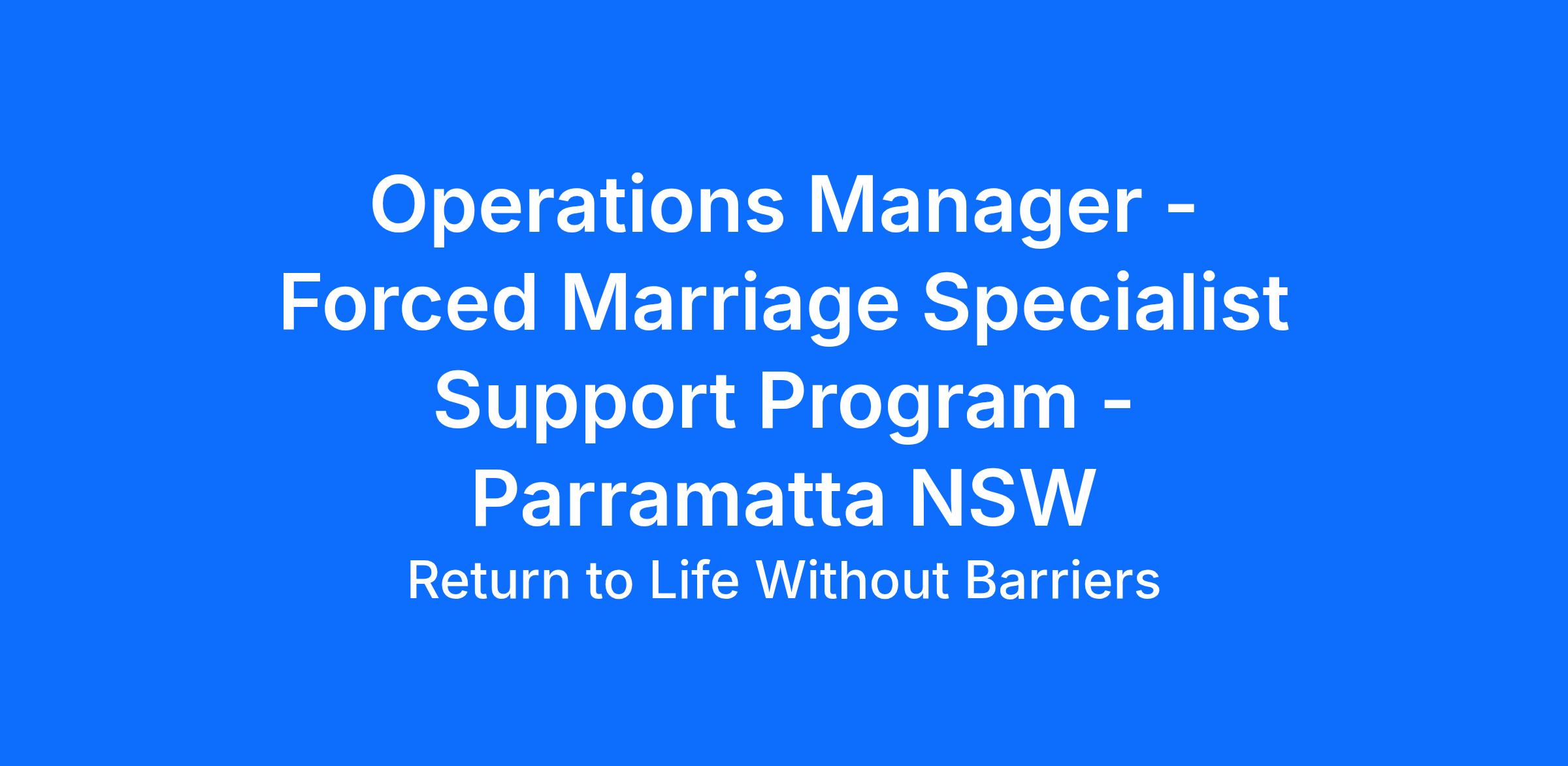 Operations Manager - Forced Marriage Specialist Support Program