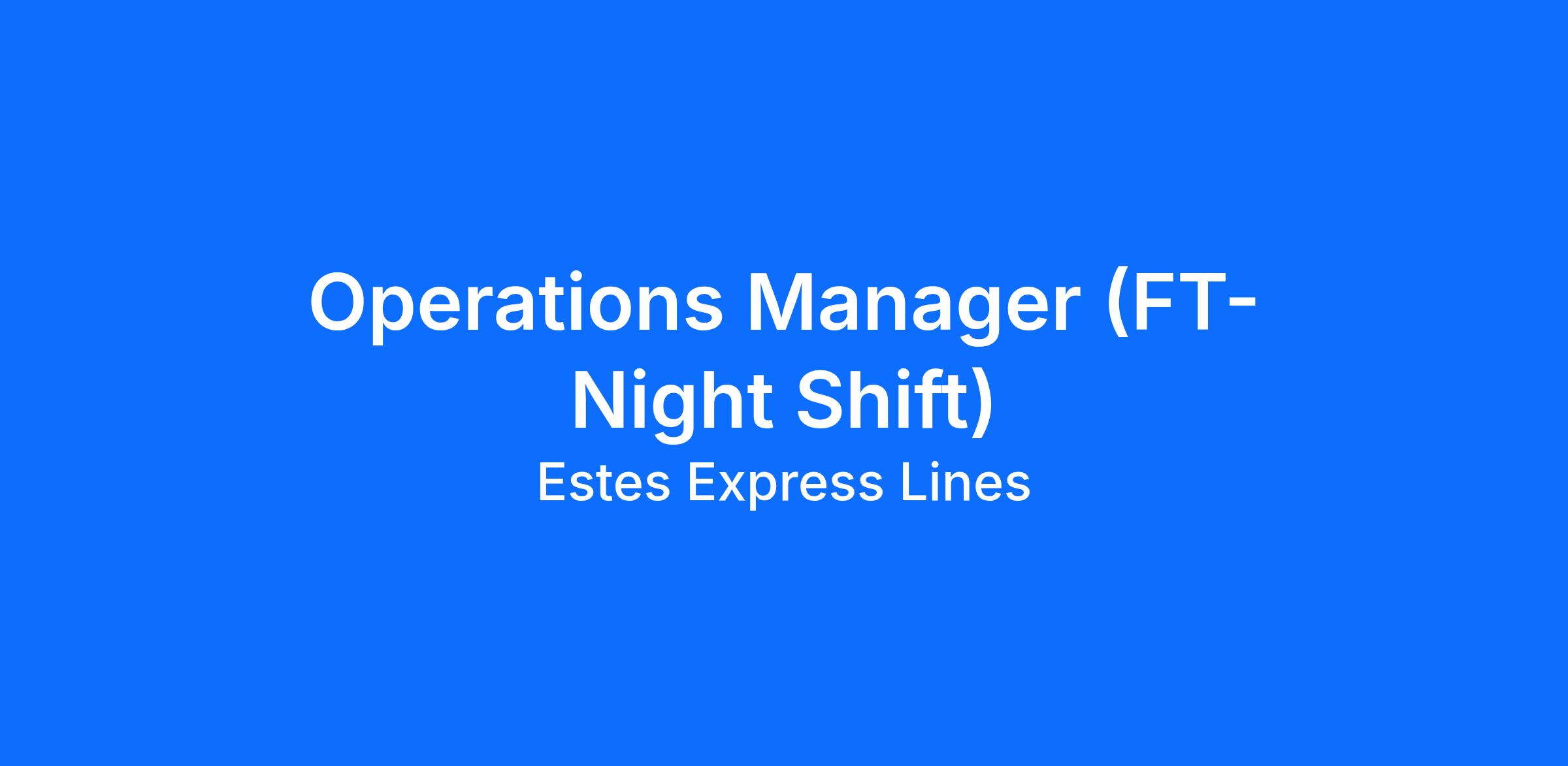 DescriptionJob Summary:The Operations Manager reports directly to the management of a small to large size transportation terminal. Complexity of the job includes responsibility for up to 450 or more employees while overseeing a diverse range of LTL operations across multiple shifts within a fast-paced environment and within various weather conditions on the dock. This position is responsible to keep freight moving within safety and business guidelines while maintaining strong, positive relationships with customers. The successful candidate will have strong leadership skills and customer service focus so if you are looking for a rewarding and challenging career with opportunity for advancement, Estes is the place for you.