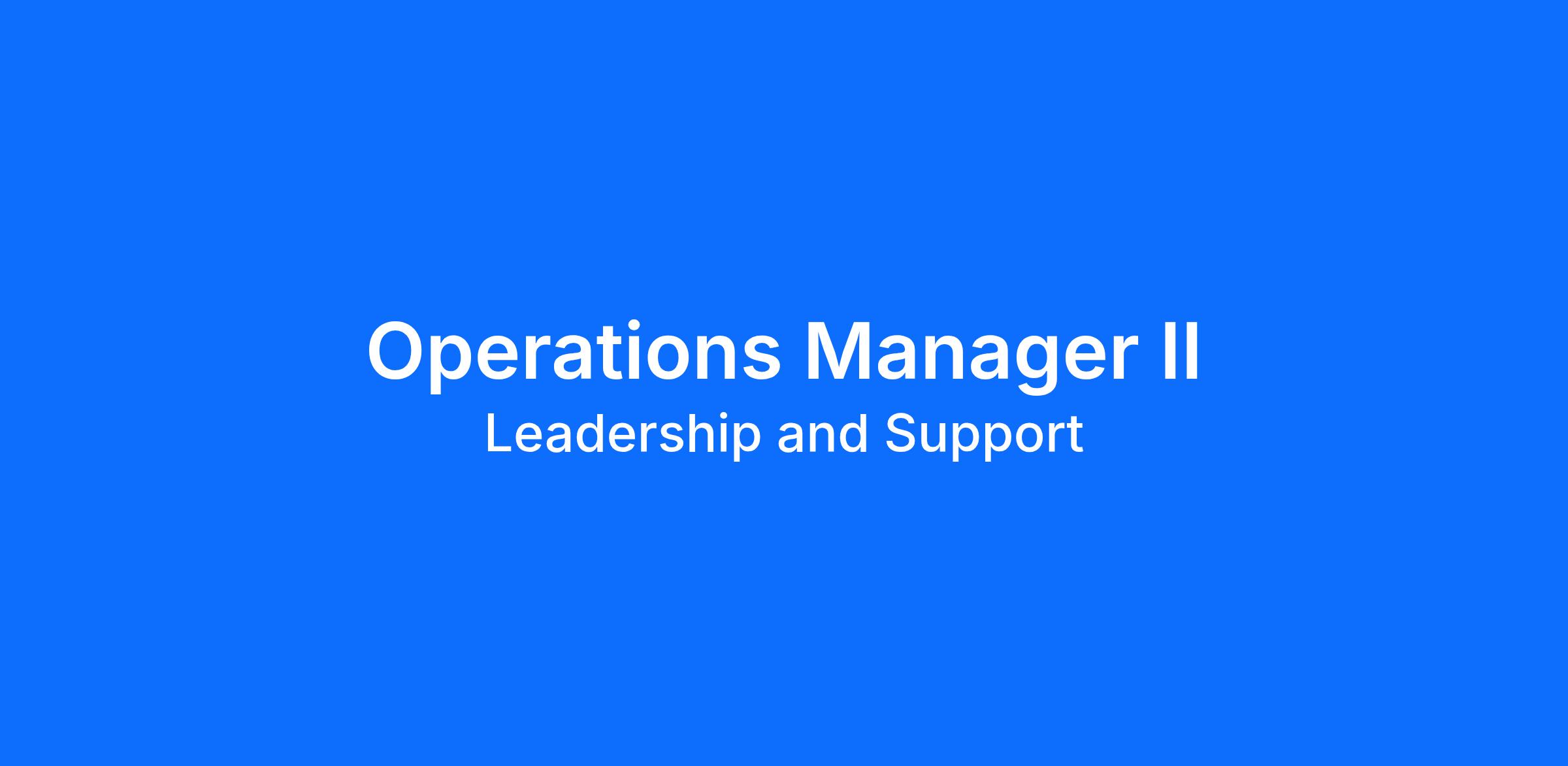 Job Title: Operations Manager II