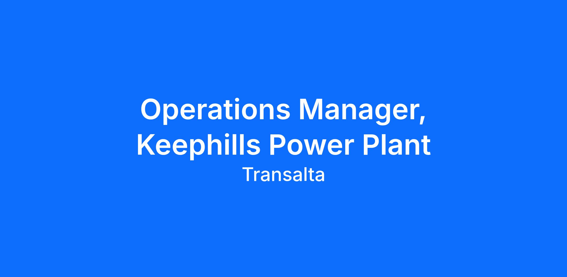 TransAlta is seeking an Operations Manager to join our team at the Keephills Thermal Plant. In this role, you’ll report to the Keephills Plant Manager and play a key part in providing operational oversight and management of the Keephills Power Plant. This is a key leadership role within the Keephills team, guiding operational excellence and cross-functional coordination between the maintenance and engineering teams to ensure safe, reliable, and efficient plant operations.