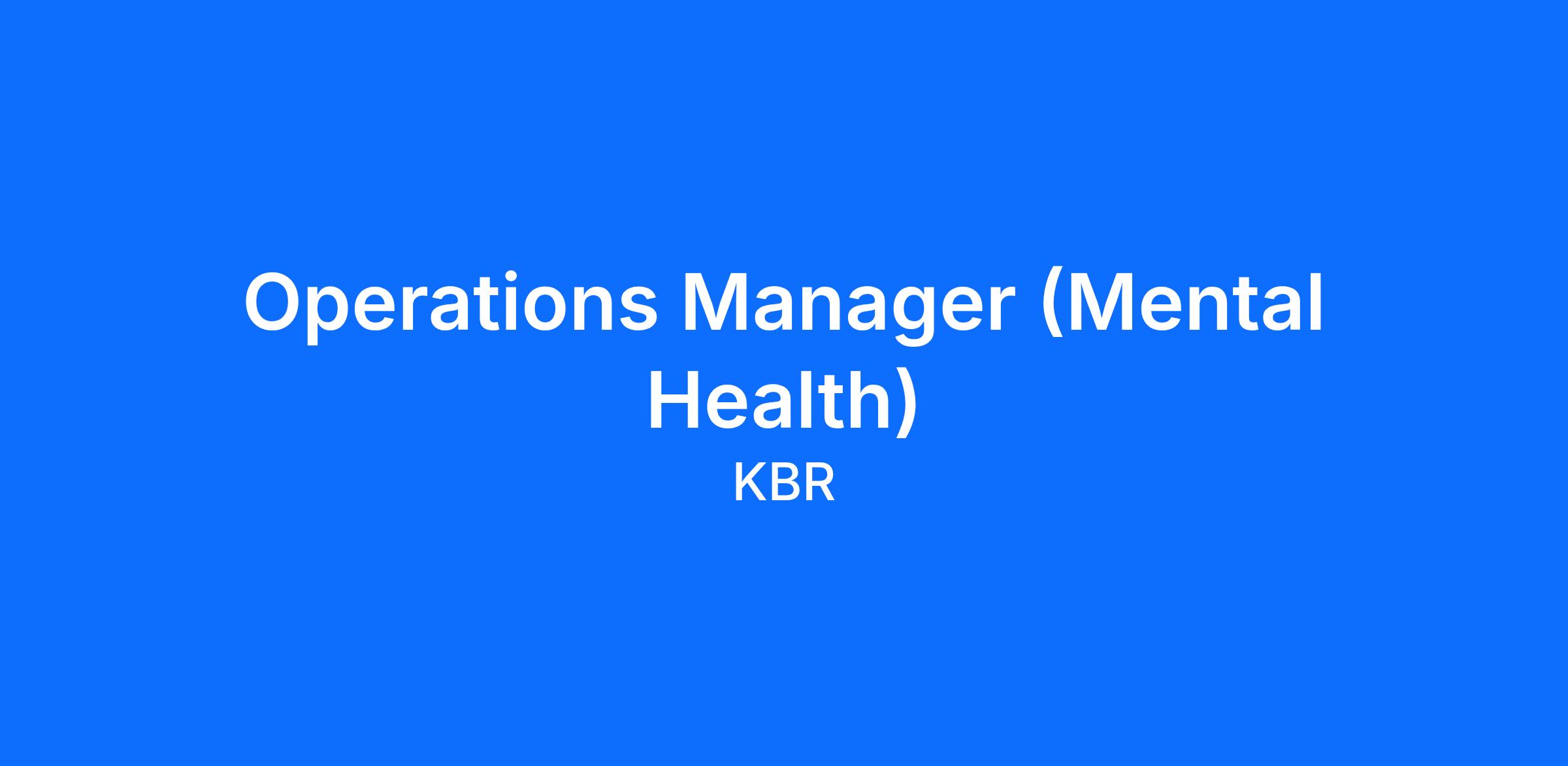 Operations Manager (Mental Health)BELONG. CONNECT. GROW. with KBR.