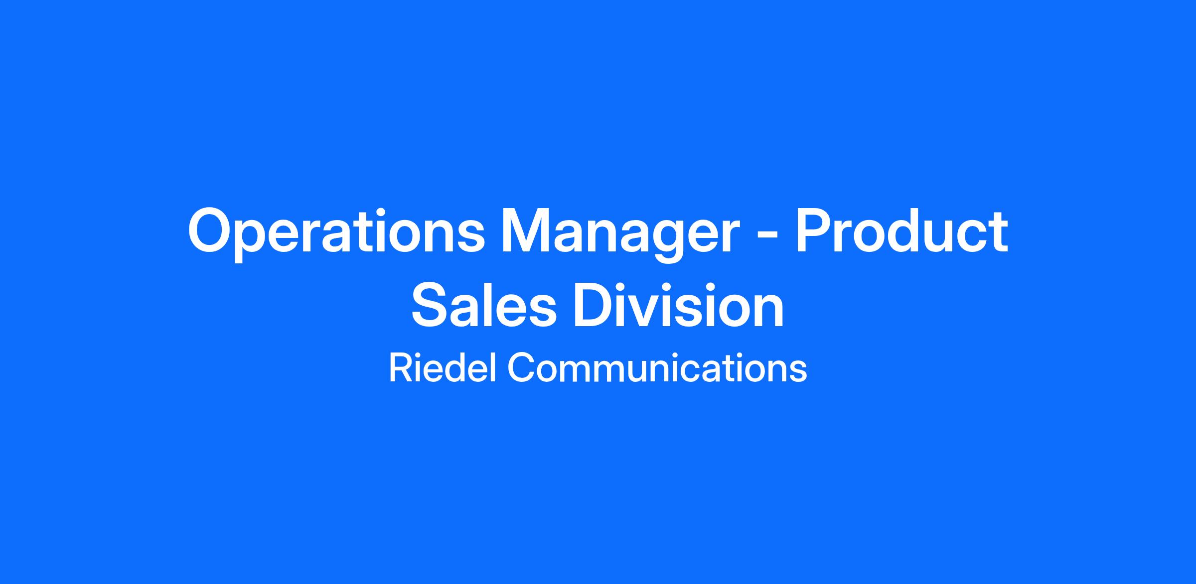 Riedel Communications Americas is seeking an experienced, hands-on Operations Manager to oversee all regional operational activities — including Order Management, Logistics, Purchasing, and general office operations.