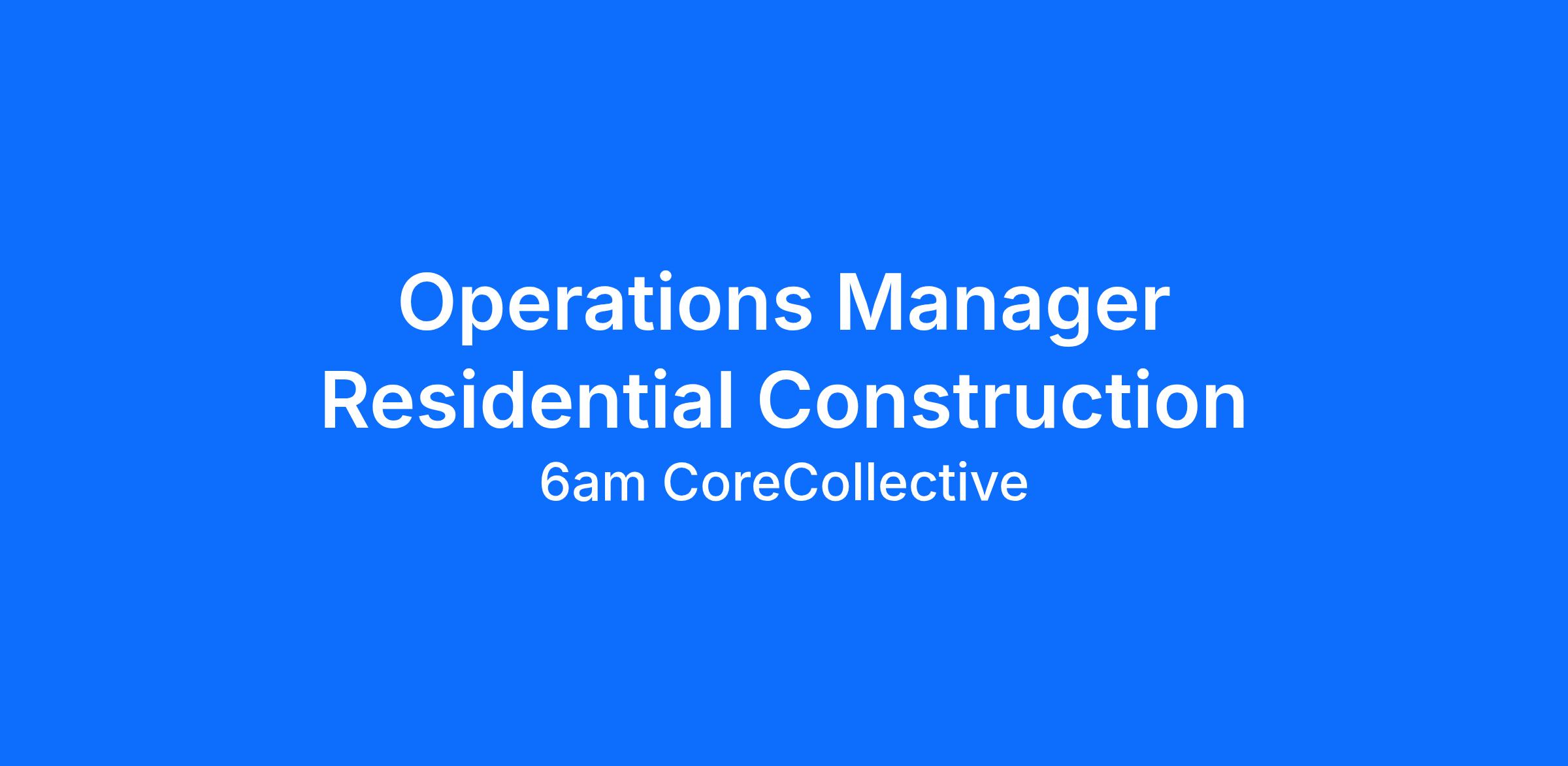 Construction Operations Manager – Residential Renovations