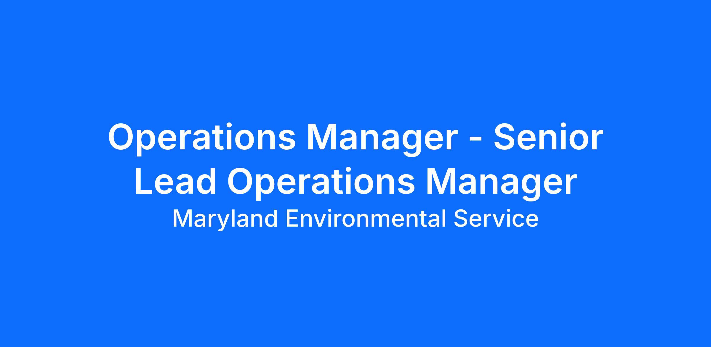 Maryland Environmental Service has an opening for an Operations Manager, Senior Operations Manager, Lead Operations Manager, or Senior Lead Operations Manager at the Montgomery County Material Recycling Facility in Derwood, Maryland. This position will be responsible for providing operation oversight for the Material Recycling Facility and related projects. This includes on-site management of staff who supervise employees, procurement, budget development and oversight, operations and maintenance of facilities and equipment, production management, heavy equipment, and safety and environmental compliance. This position will serve as the liaison between site and MES HeadquartersEstimated Pay Range: