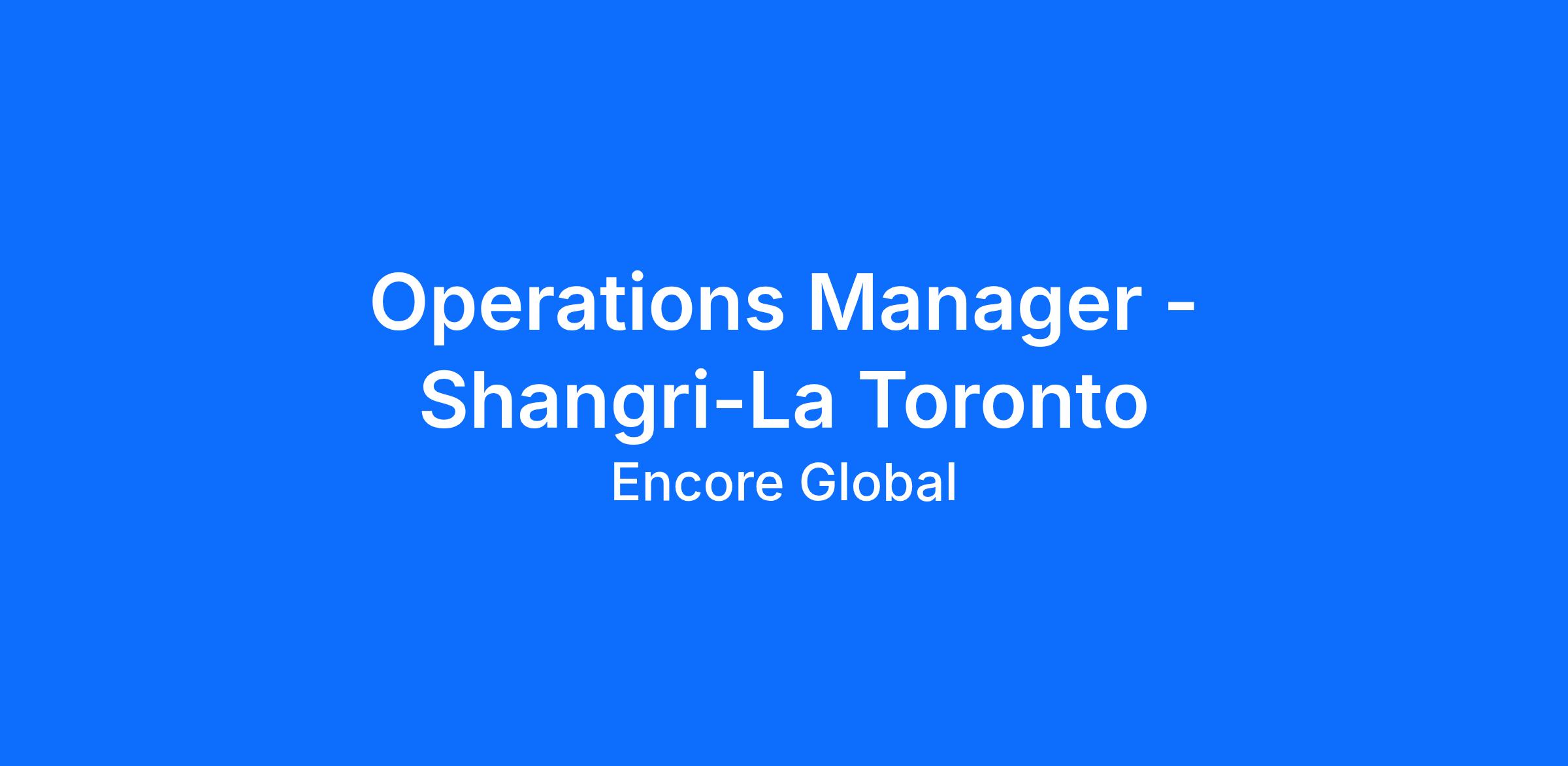 Operations Manager - Shangri-La Toronto