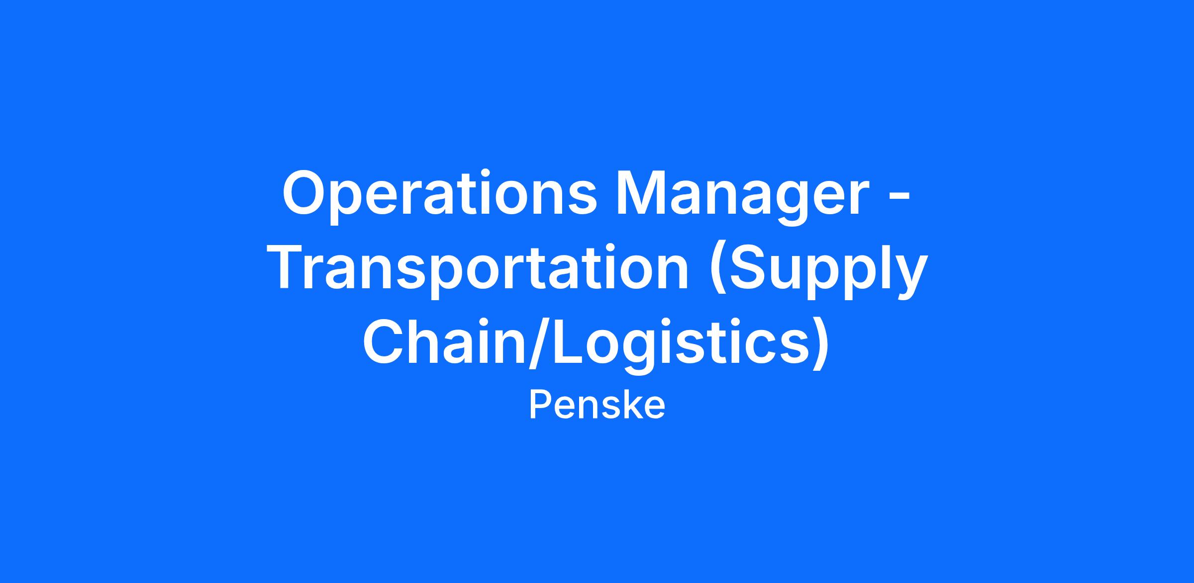 Penske Logistics is seeking a proven leader with relevant experience and skills to join our team of transportation and logistics professionals. We are seeking a candidate to supervise drivers at one of our locations.