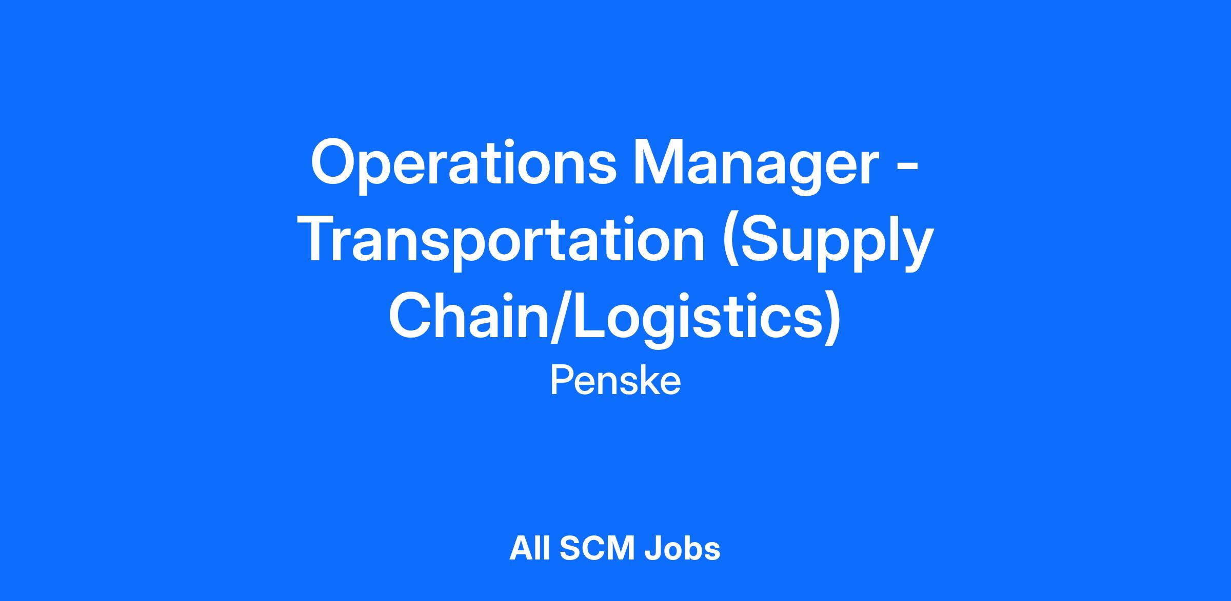 Penske Logistics is seeking a proven leader with relevant experience and skills to join our team of transportation and logistics professionals. We are seeking a candidate to supervise drivers at one of our locations.