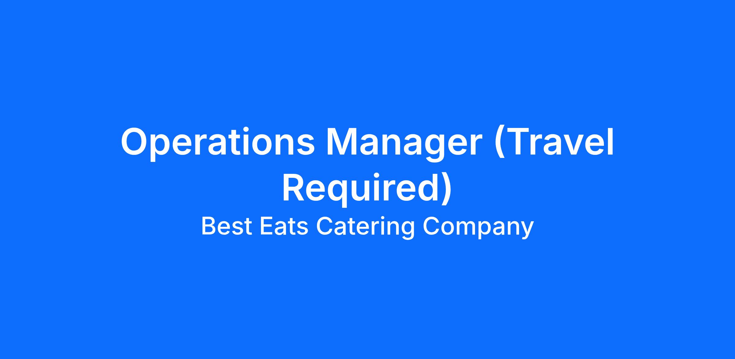 Job Title: Operations Manager (Travel Required)