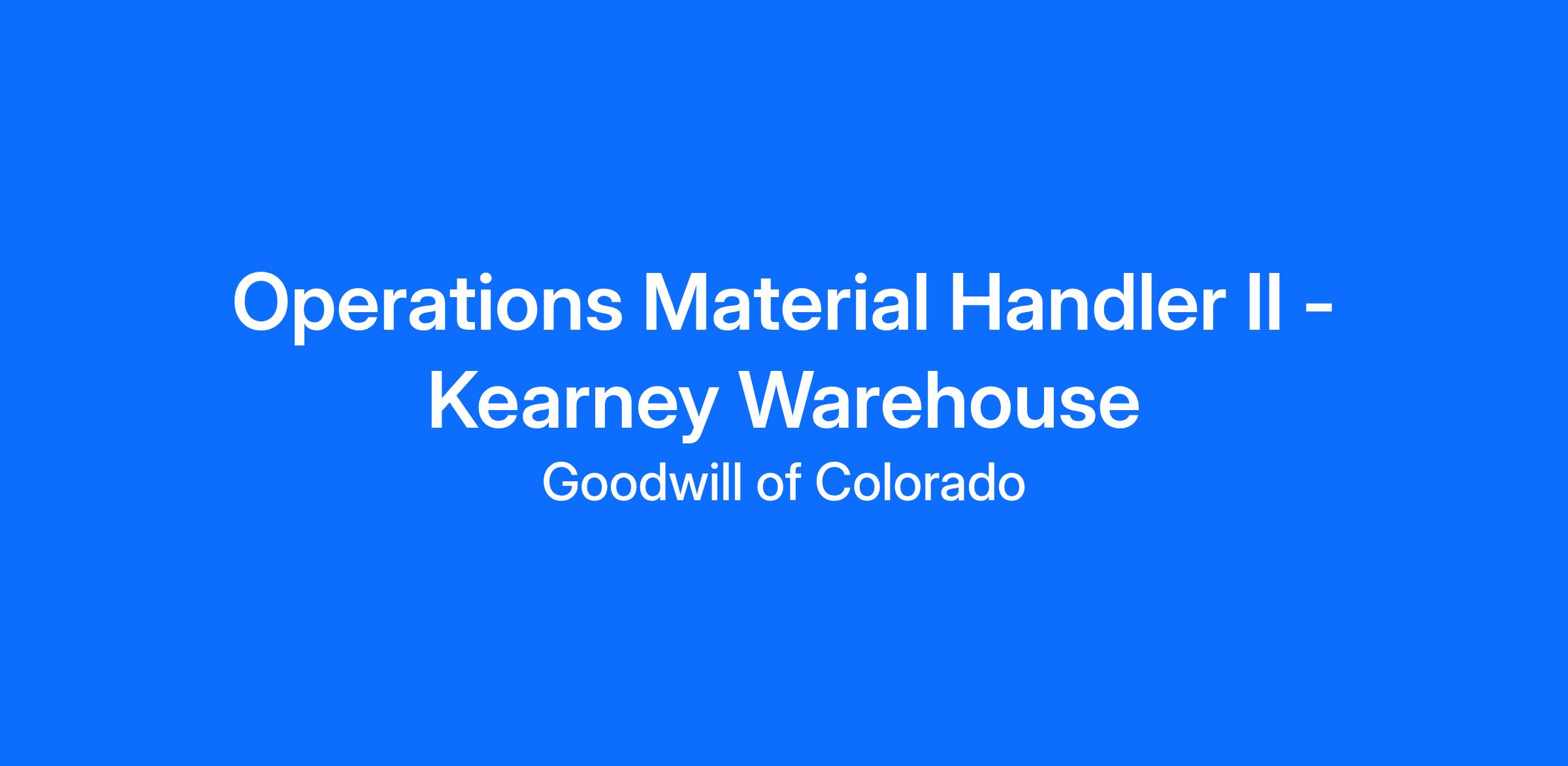 The Material Handler II, Operations (Ops) will work primarily in an assigned production and/or warehousing environment, operating heavy equipment, to move, store and retrieve donated product following Goodwill of Colorado’s warehousing and material handling procedures and guidelines. This role may occasionally be in contact with customers and will be responsible for providing excellent customer service by greeting customers in a welcoming manner and responding timely and professionally to customer inquiries.