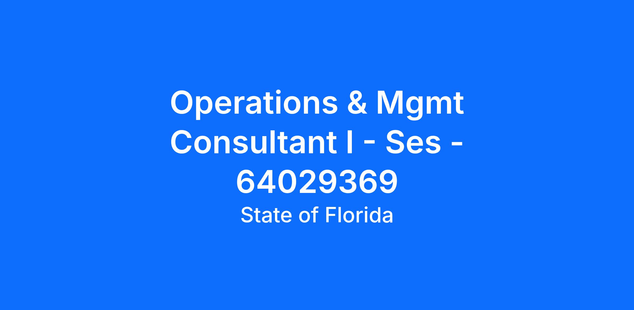 Working Title: OPERATIONS & MGMT CONSULTANT I - SES - 64029369