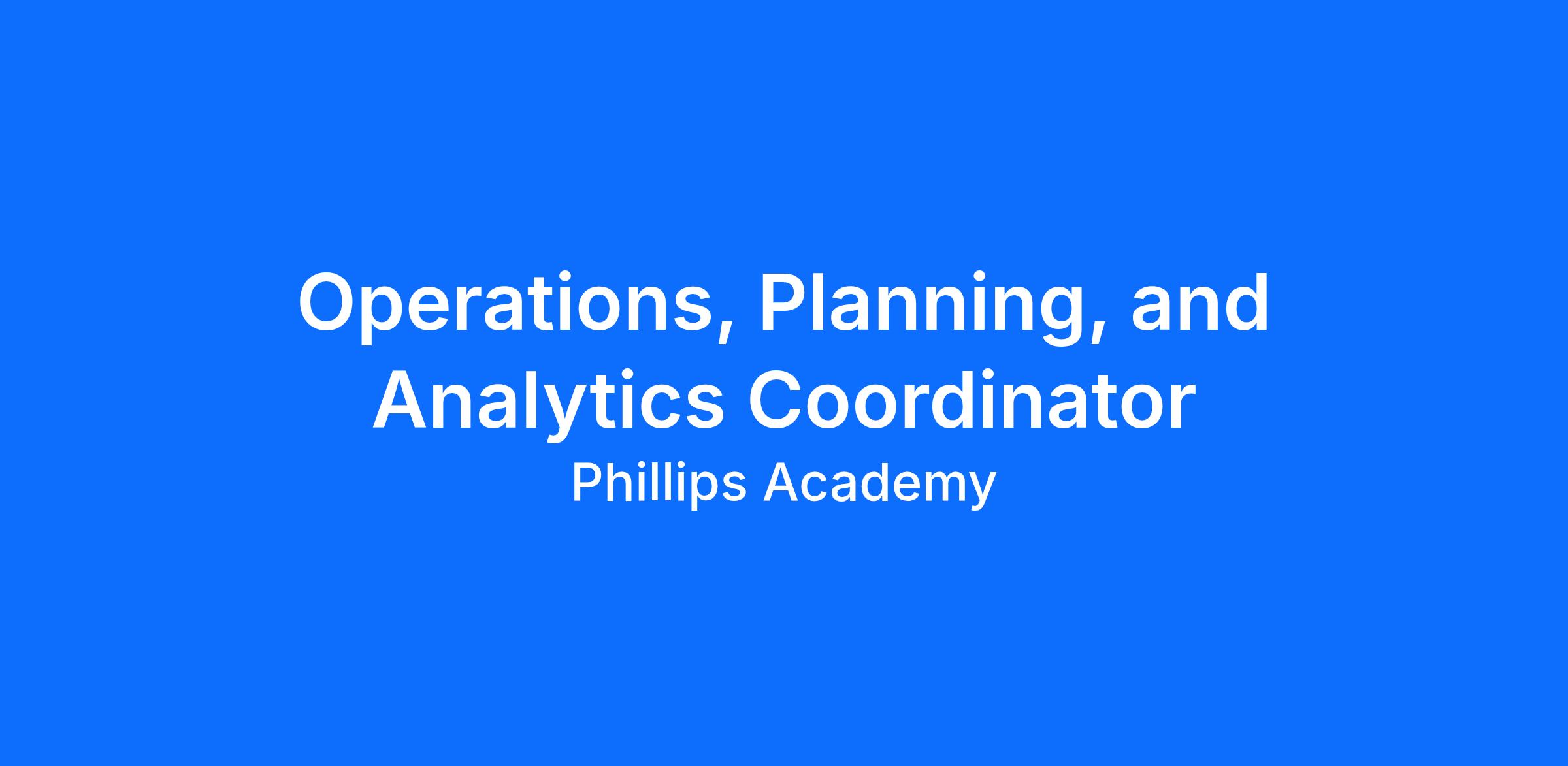 Phillips Academy is seeking an organized and collaborative Operations, Planning, and Analytics Coordinator to support the Office of Operations, Planning, and Analytics (OPA), the operational division of the Office of Academy Resources (OAR). This administrative role supports day-to-day operations and cross-functional initiatives that contribute to the success of engagement, fundraising, and stewardship efforts.