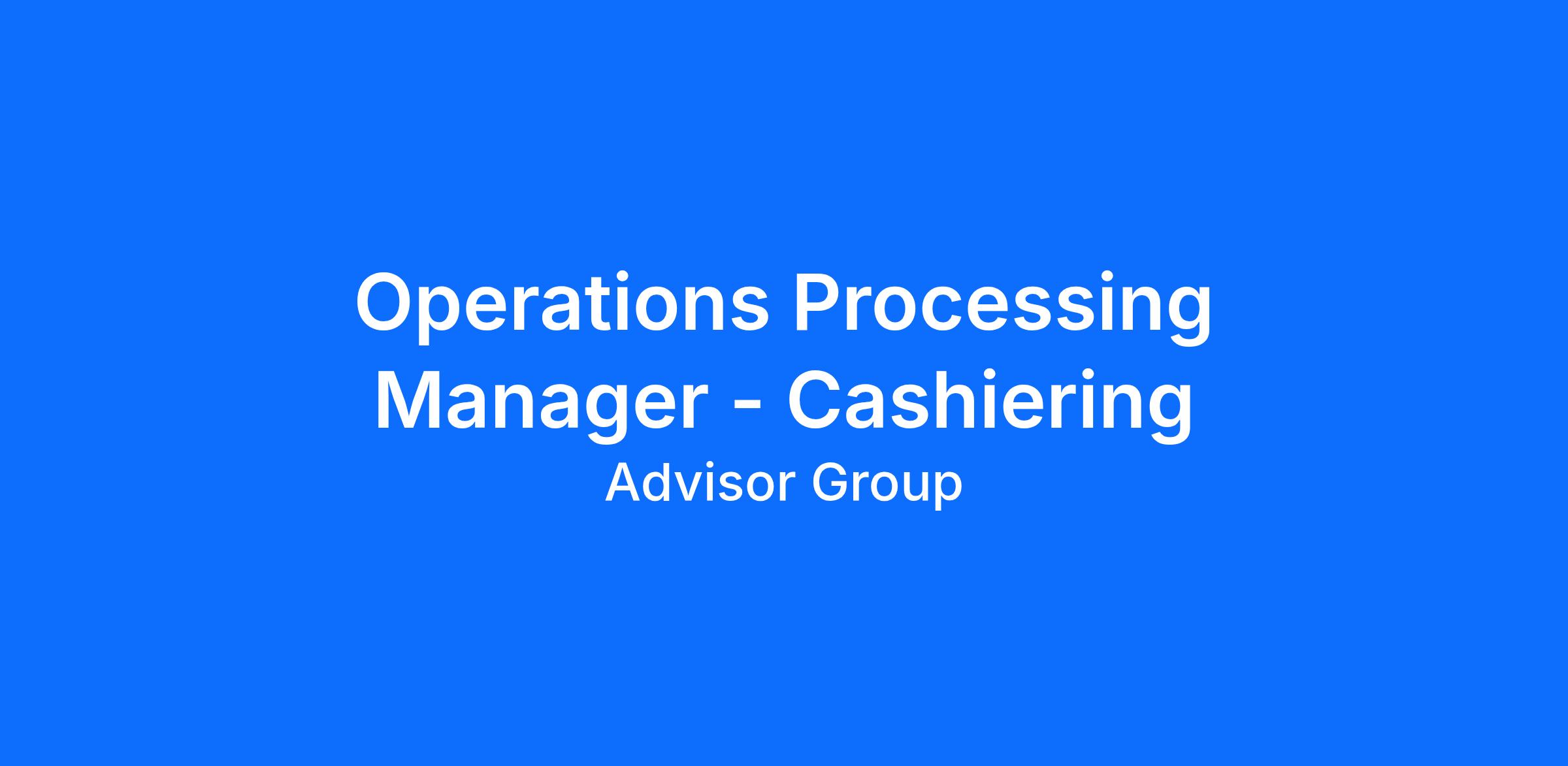Ops Processing Manager – Cashiering