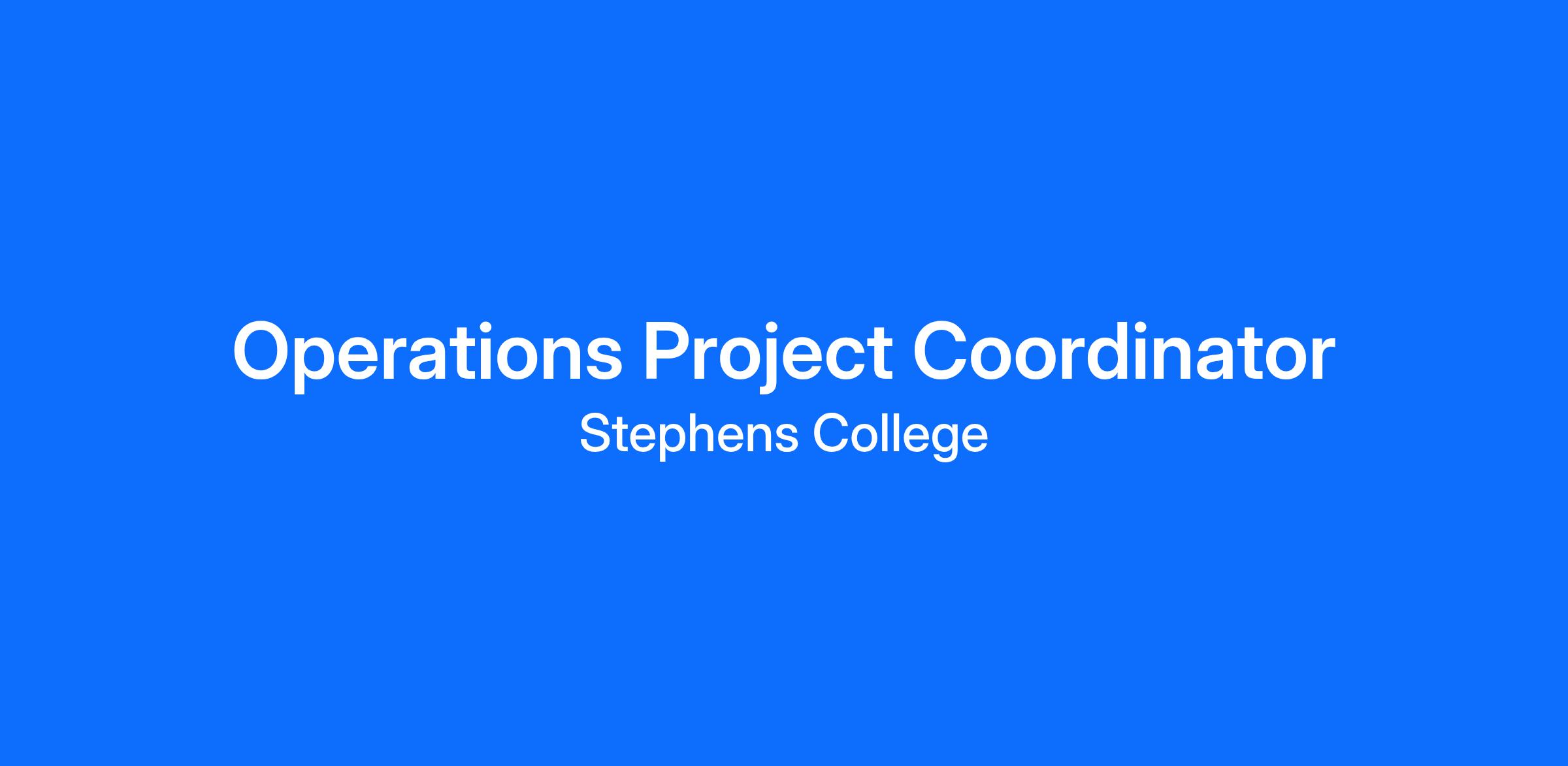 The Operations Project Coordinator works closely with the Vice President of Operations, department heads, facilities staff, security personnel, and external vendors to bring structure, accountability, and follow-through to institutional projects. This individual serves as an ambassador for the college, ensuring that all projects support both operational excellence and the distinctive culture of Stephens College.