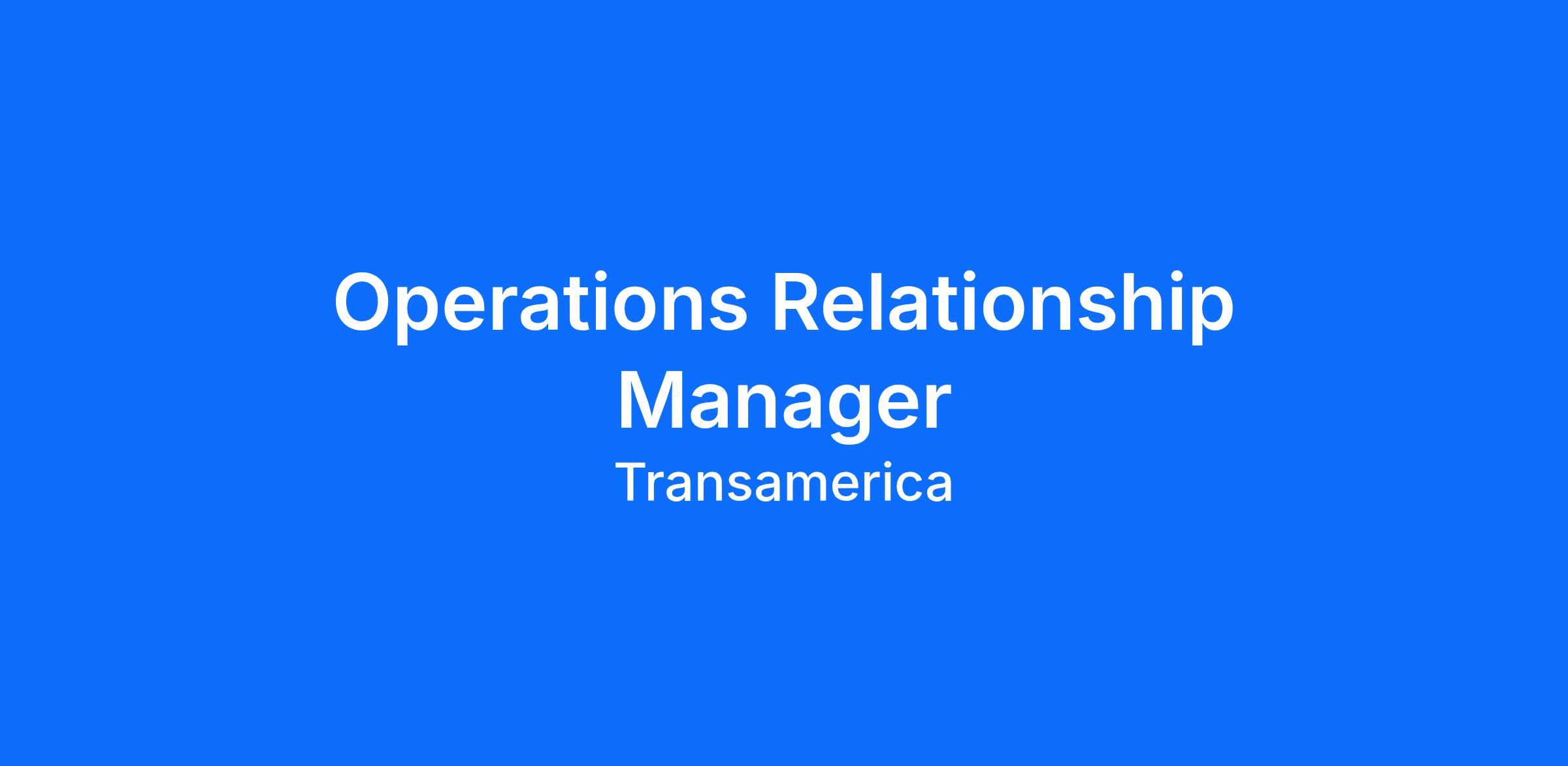 The Operations Relationship Manager is responsible for enhancing the service experience of operational transactions for our key distributor firms and advisors. Partners with the business development team, wholesaling staff, key distributors, and crossfunctionally within Transamerica to provide continous improvements for pre-sale and post-issue services. Addresses distributor operational needs to enhance sales opportunities. Leads a team responsible for improving service resolution time, enhance advisor loyalty, and improve customer satisfaction. Collaborates the Administrative Services organization to recognize trends, resolve systemic issues, and drive procedure improvements.Job Description