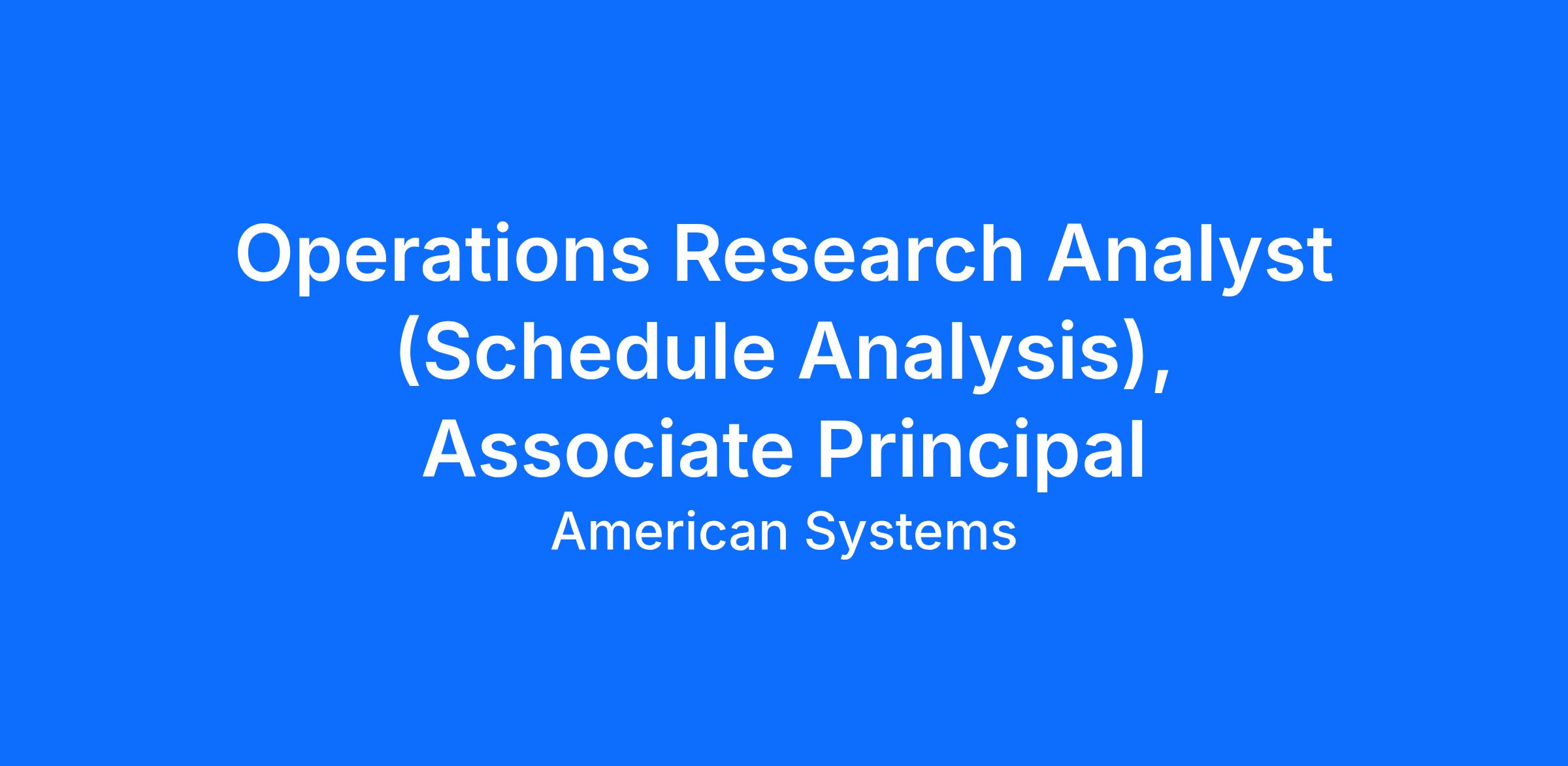 American Systems is seeking Senior Project Schedulers and Senior Schedule Risk Analysts to support current and future task orders for DoW program offices and PEOs. These roles will support complex weapon system acquisition programs and work closely with government and industry stakeholders to develop, analyze, and improve program schedules and schedule risk profiles.