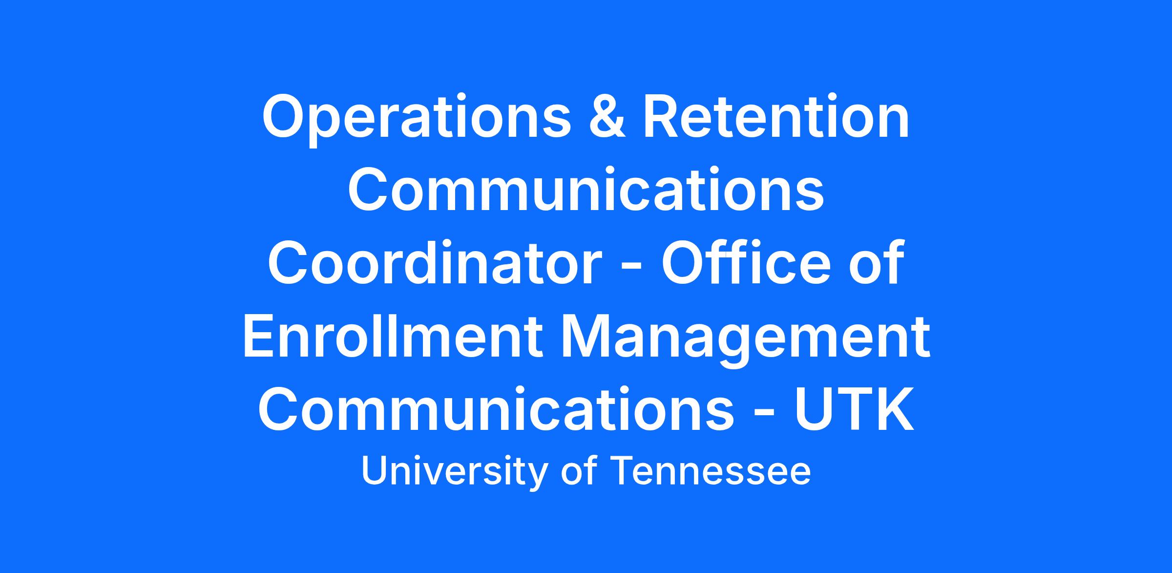 The Office of Enrollment Management Communications at the University of Tennessee, Knoxville (UTK) invites applications and nominations for our Operations & Retention Communications Coordinator position. We are seeking candidates who can contribute in meaningful ways to enhance the accessibility of higher education, fostering a diverse and inclusive academic environment, and improving the recruitment and graduation of our students. The University of Tennessee, Knoxville, has been ranked by Forbes as one of America’s best large employers, as recognized on the 2025 list.