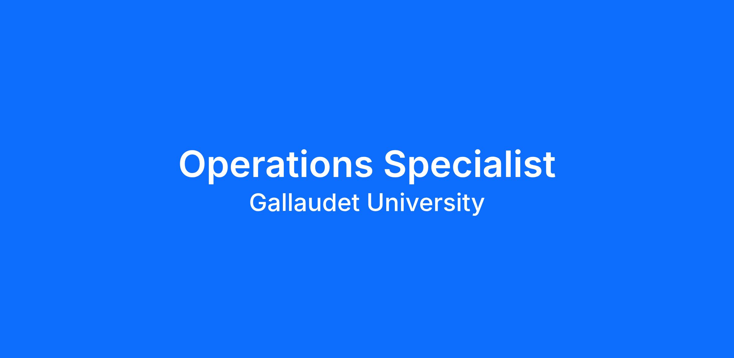 Reporting to the Operations Manager, the Operations Specialist provides administrative support for Gallaudet Interpreting Service (GIS) and supports payroll for employees within GIS, including freelance interpreters.