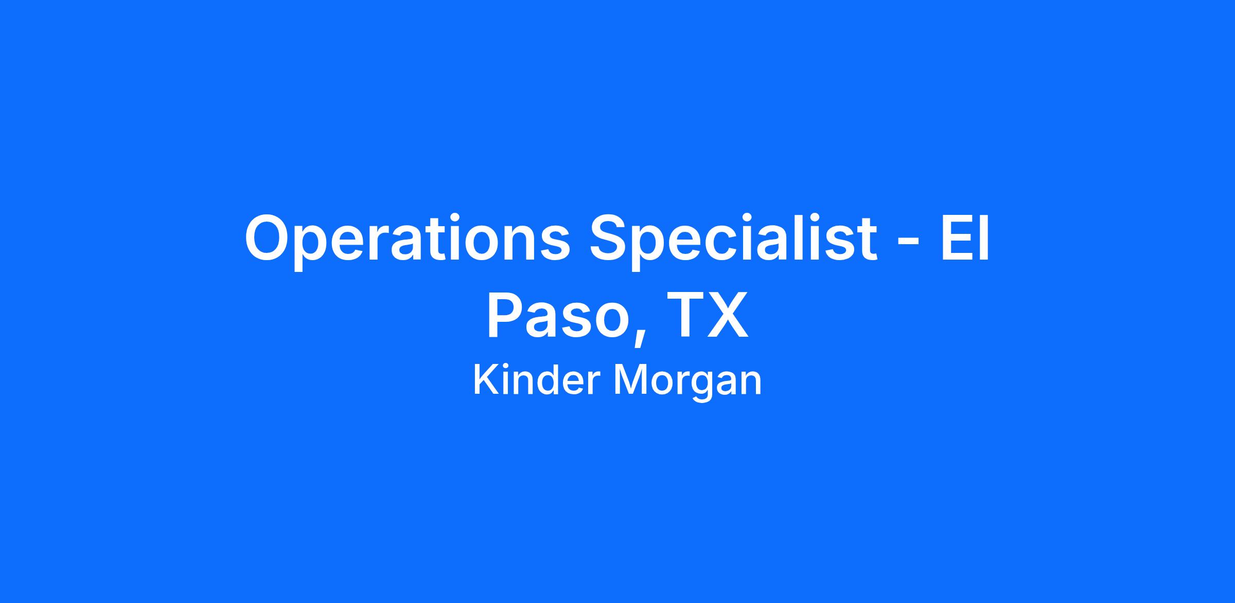 Operations Specialist - El Paso, TX
