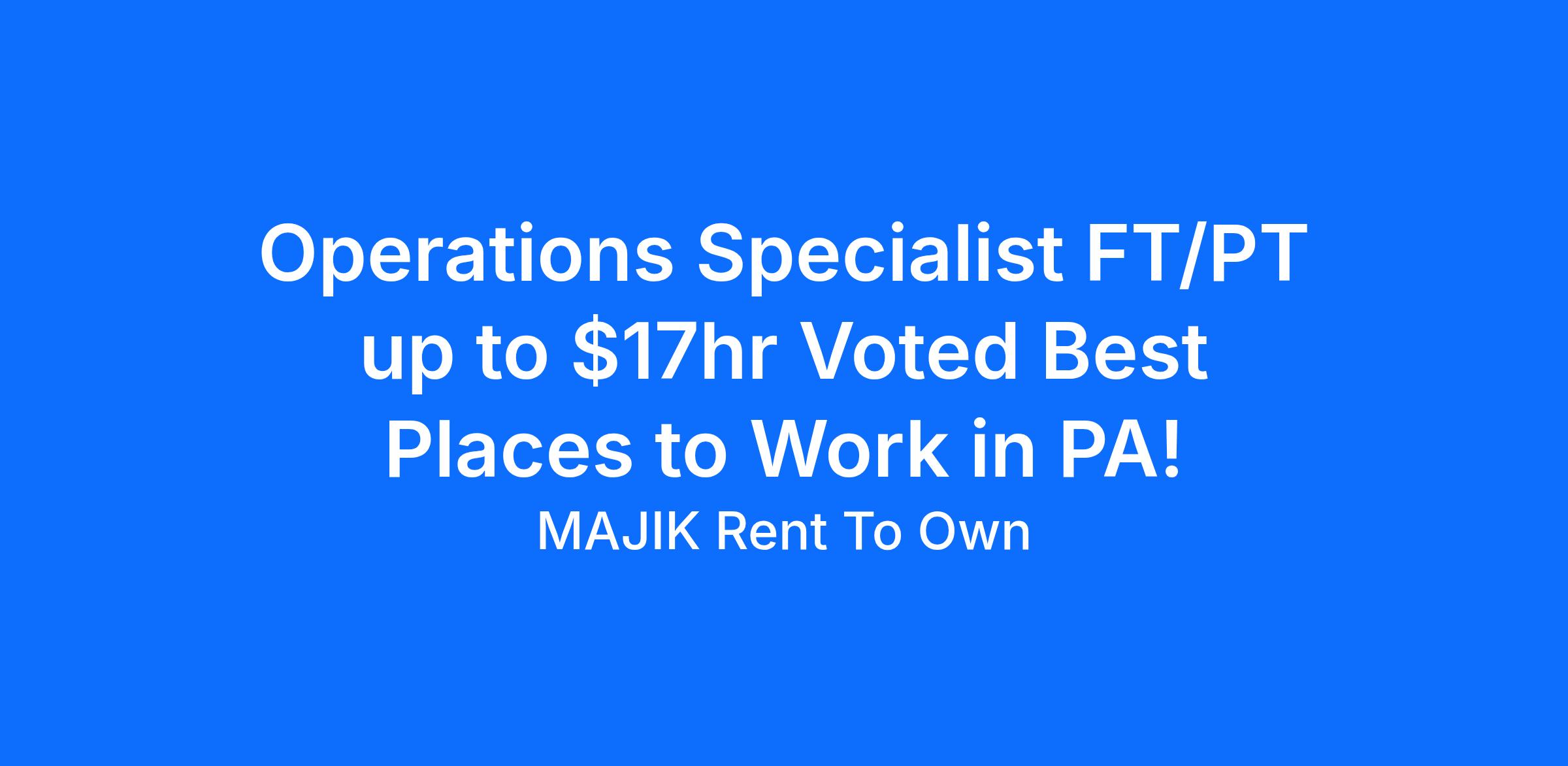 Operations Specialist FT/PT up to $17hr Voted Best Places to Work in PA!