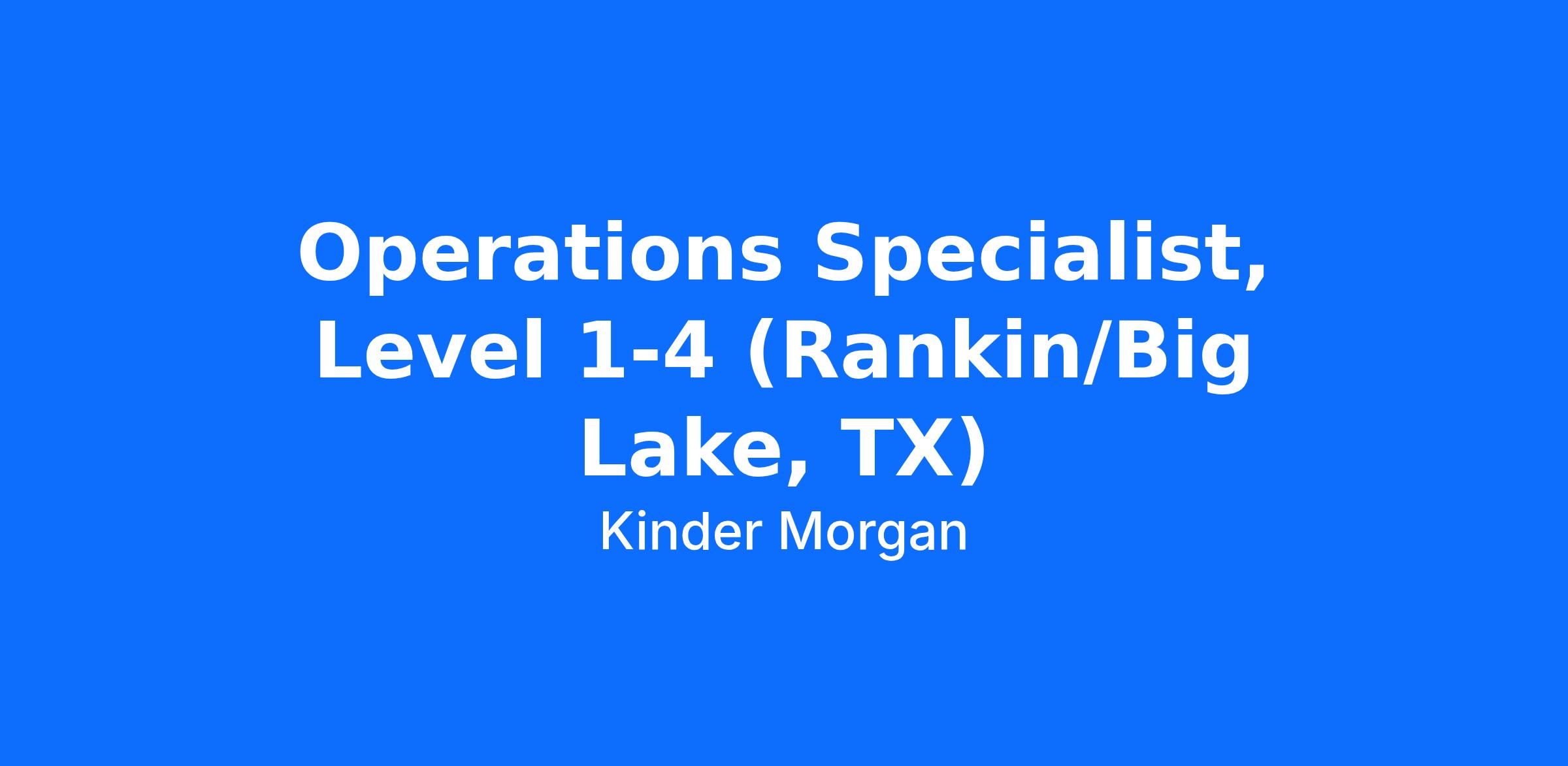 Operations Specialist, Level 1-4 (Rankin/Big Lake, TX)