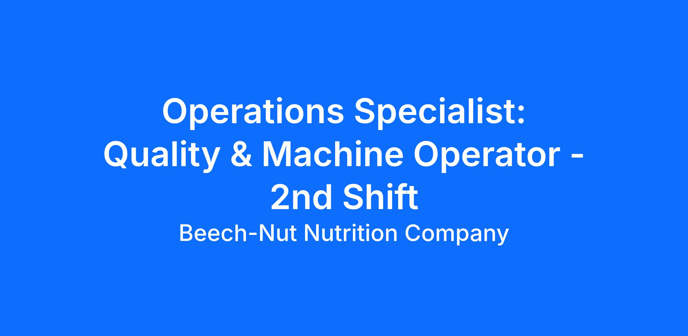 Operations Specialist: Quality & Machine Operator - 2nd Shift