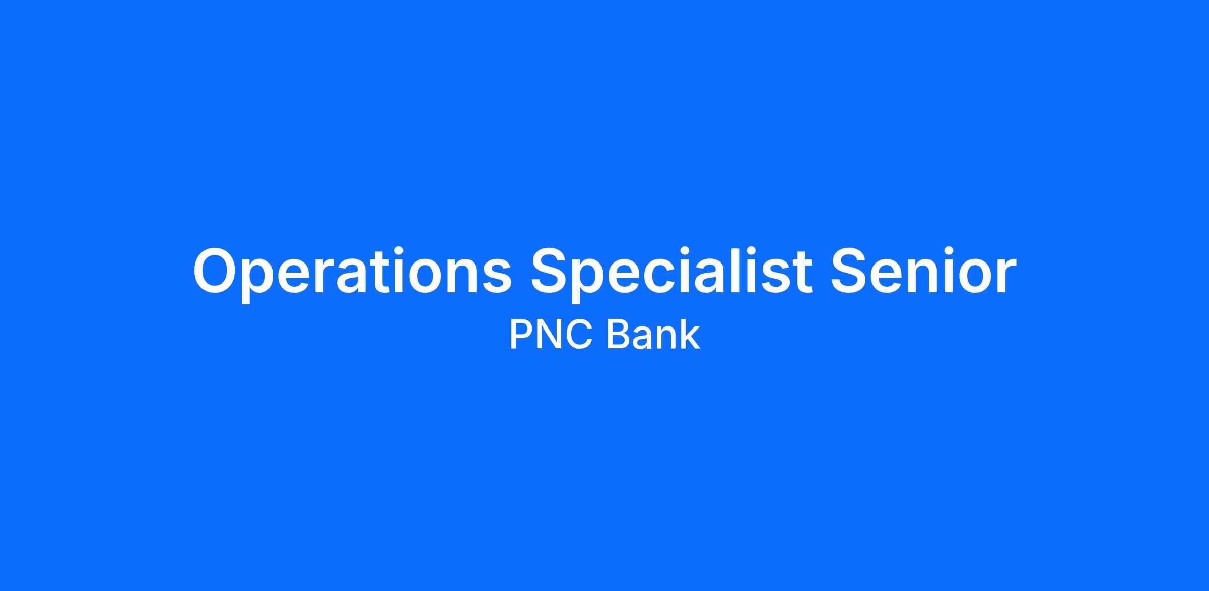 At PNC, our people are our greatest differentiator and competitive advantage in the markets we serve. We are all united in delivering the best experience for our customers. We work together each day to foster an inclusive workplace culture where all of our employees feel respected, valued and have an opportunity to contribute to the company’s success. As an Operations Specialist Senior within PNC's Finance organization, you will be based remotely within PNC’s footprint. Preferred locations are listed in this requisition.