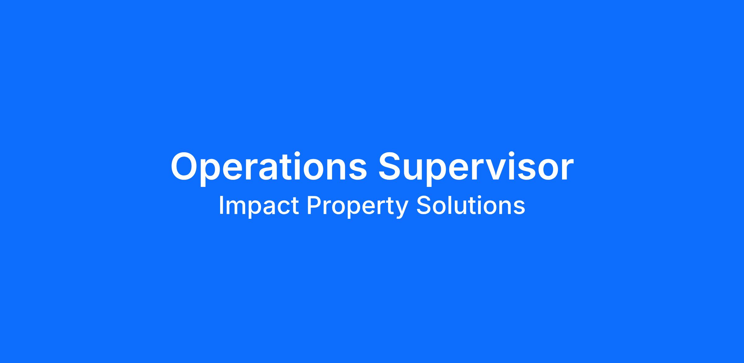 Impact Property Solutions is currently seeking an experienced Operations Supervisor who will partner with, and ensure the long-term success, of our customers. Operations Supervisor must become fluent in all products the company represents and promote company strategic direction to increase sales and generate revenue and profit.