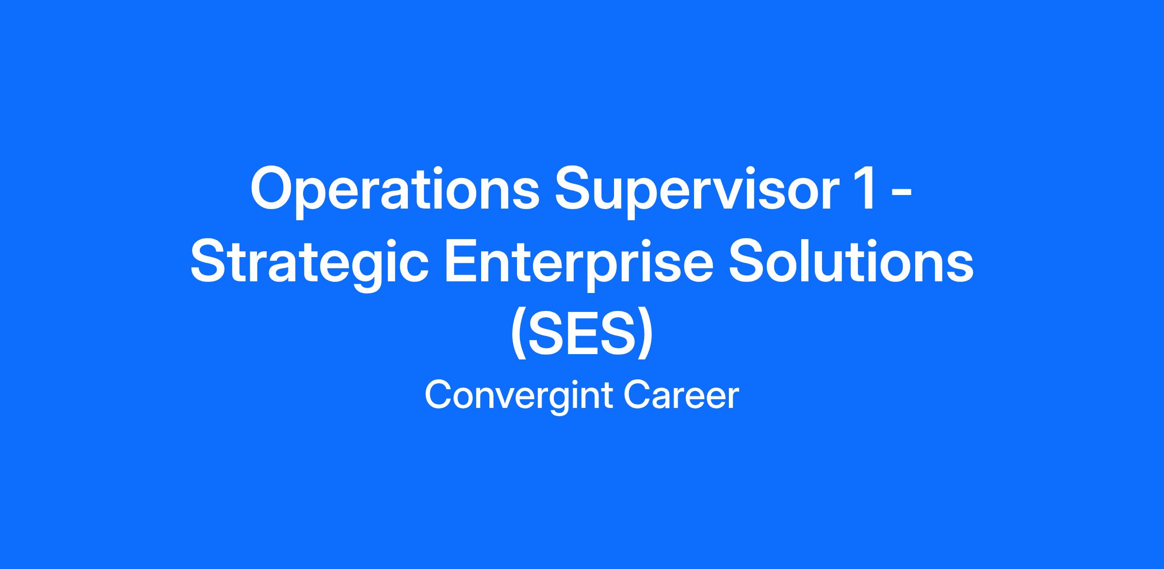 Convergint is looking for a full-time, enthusiastic, results driven and forward-thinking Operations Supervisor to join our amazing culture on the Strategic Enterprise Solutions (SES) Team. As an Operations Supervisor, you are a part of a dynamic team that allows you to grow as Convergint grows.