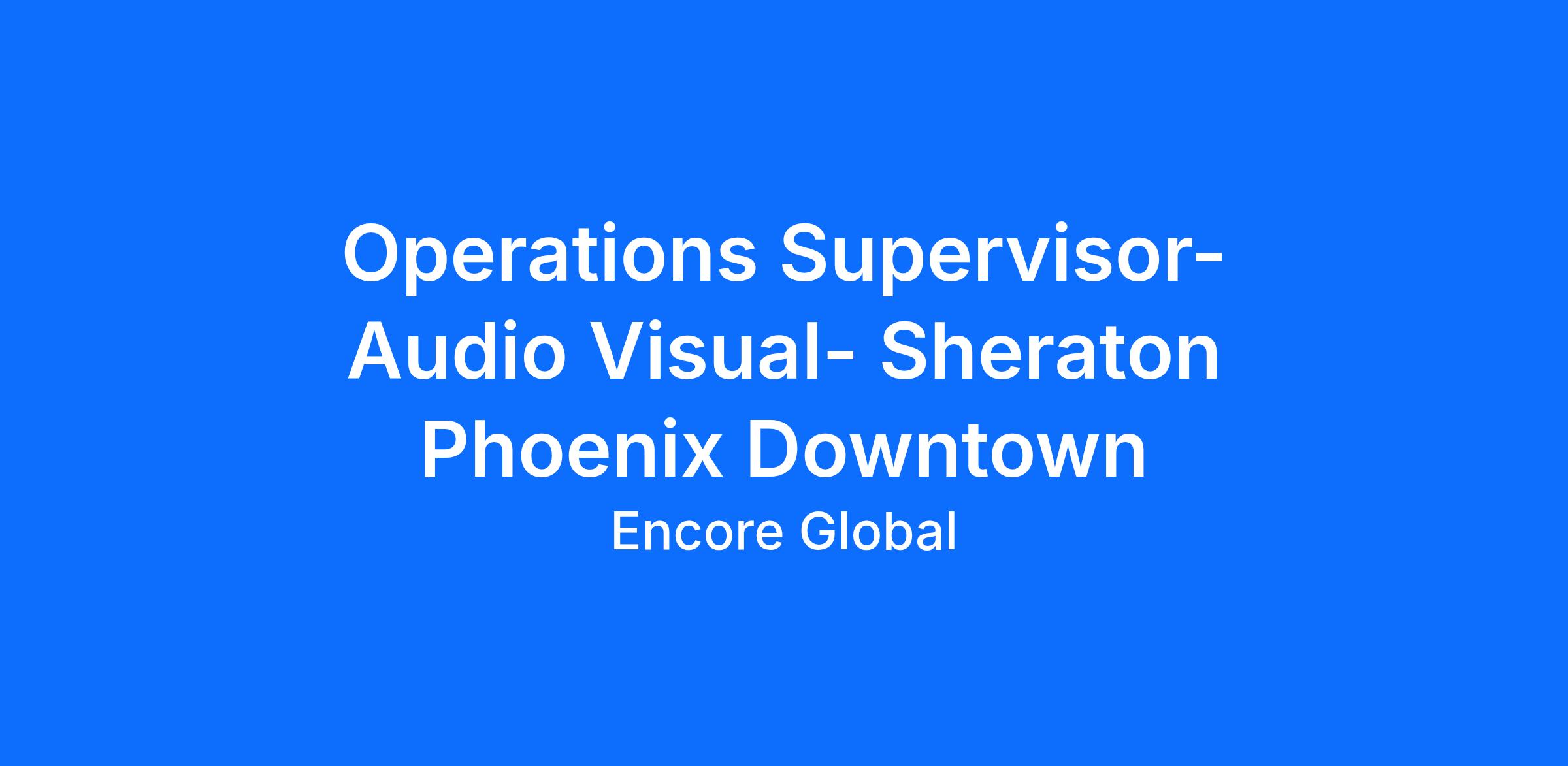 Operations Supervisor- Audio Visual- Sheraton Phoenix Downtown