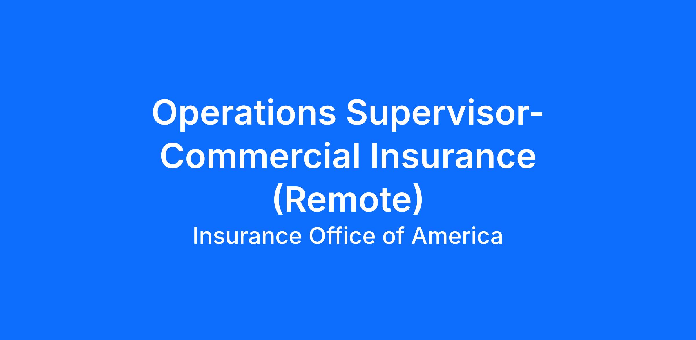 Title: Operations Supervisor – Commercial Lines
