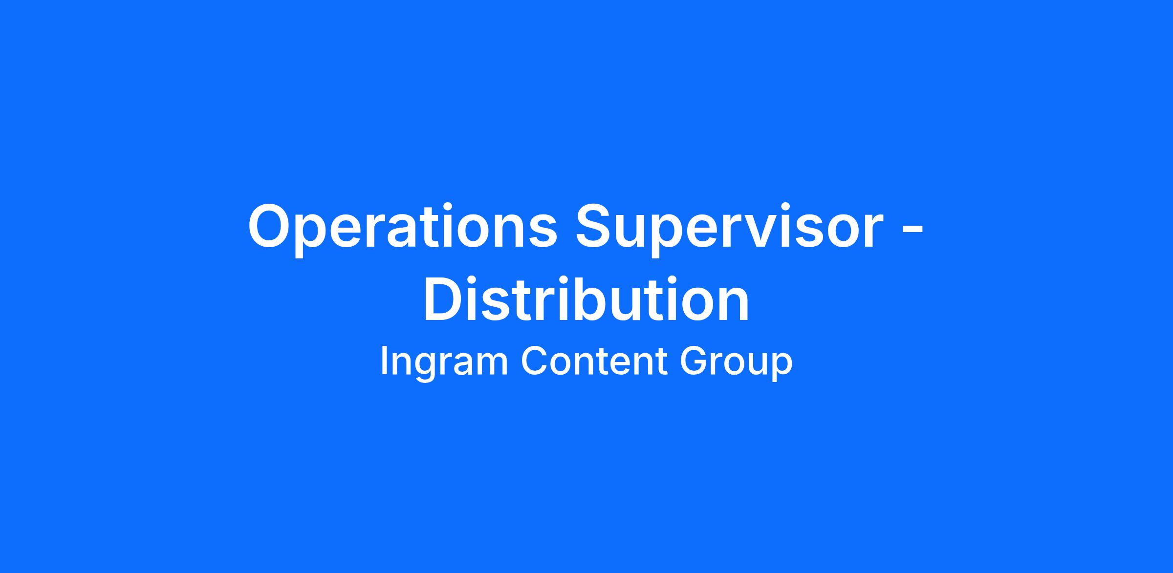 Ingram Content Group (ICG) is hiring an Operations Supervisor to support our Large pack team in Jackson, TN. The Operations Supervisor ensures the efficient operation of shift(s) and/or department(s) in a warehouse distribution environment.