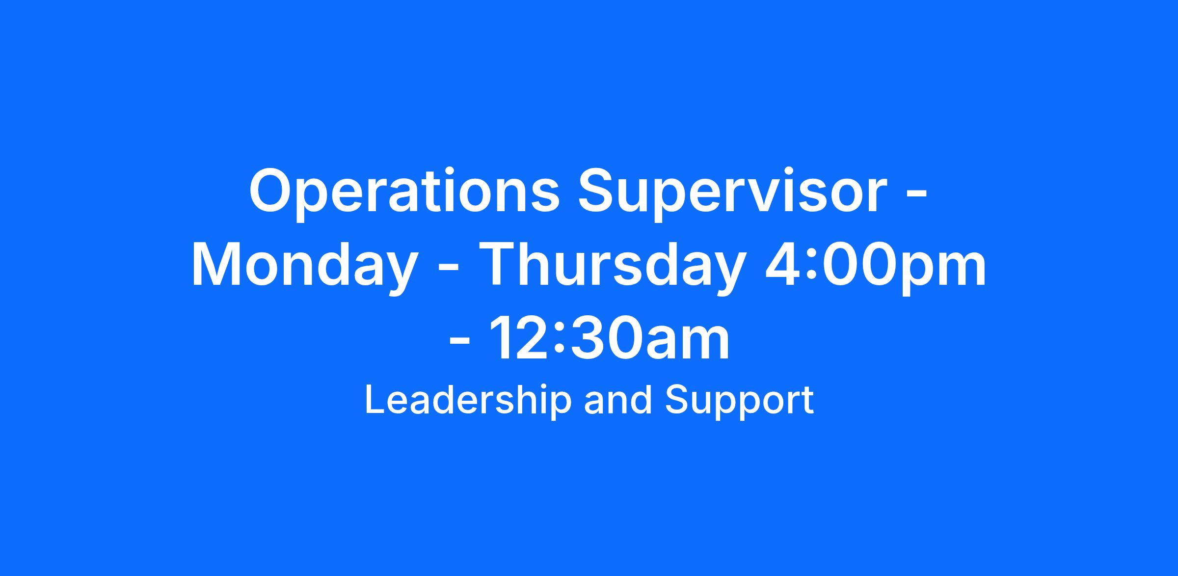 Shift/Schedule: Monday - Thursday 4:00pm - 12:30am