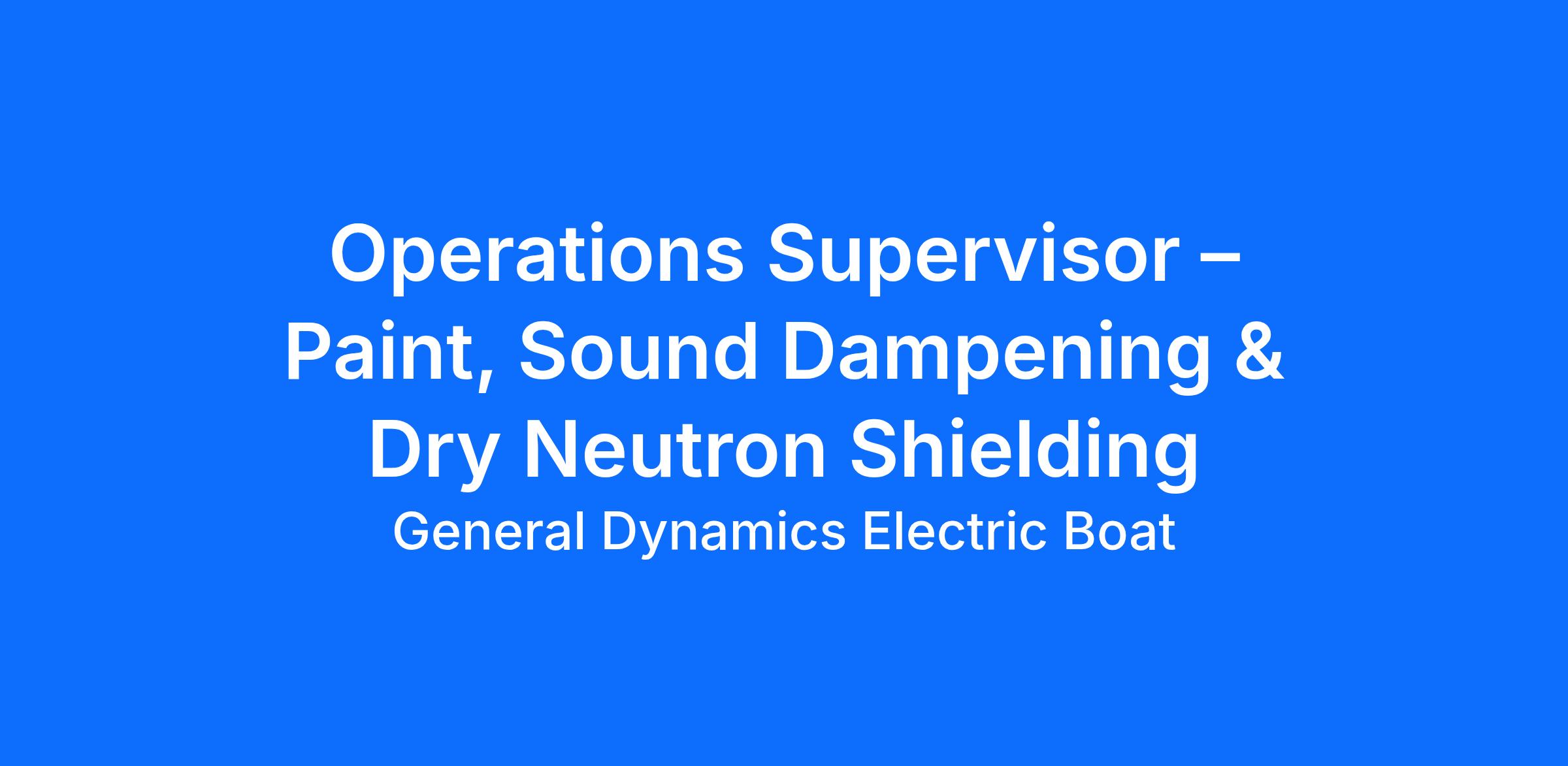 The Operations Supervisor - Paint, Sound Dampening & Dry Neutron Shielding must possess an energetic and positive attitude and be willing to change and develop as requirements of assigned tasks dictate.