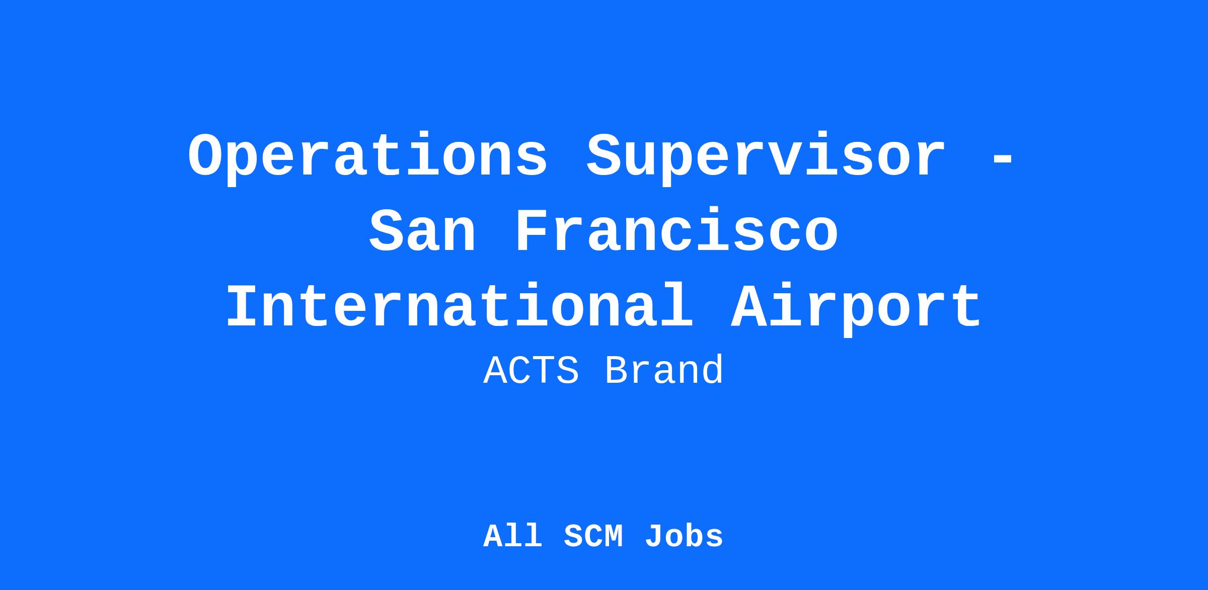 ACTS-Aviation Security Inc. has an immediate opening for an Operations Supervisor at the San Francisco International Airport, San Francisco, CA.