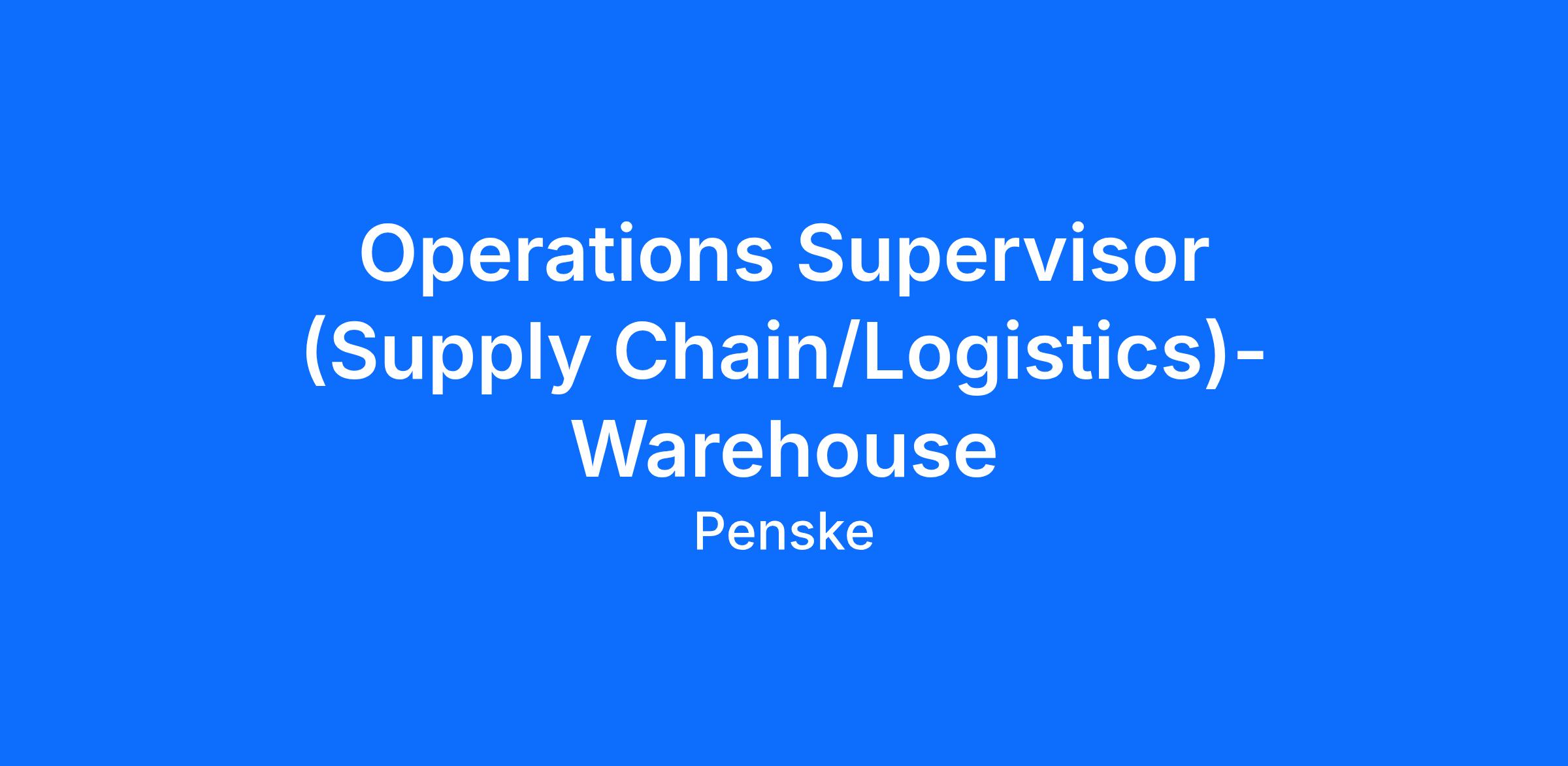 ***High-level Requirements*** – Looking for a professional Warehouse Operations Supervisor with the ability to engage and effectively communicate. This is not a logistics/transportation Supervisor. This position requires management of labor, clerical tasks and managing the shift each day. High level ability to multitask, and work in a fast-paced environment. Proven skills to foster a positive, accountable environment through coaching and team building skills. Strong sense of urgency, capable of leading 60+ associates, while multi-tasking between needs of key stakeholders, operations, and associates in various warehouse roles. The Sr. Operations Supervisor provides leadership to lead staff to ensure customer requirements are achieved while meeting our Penske goals and objectives.