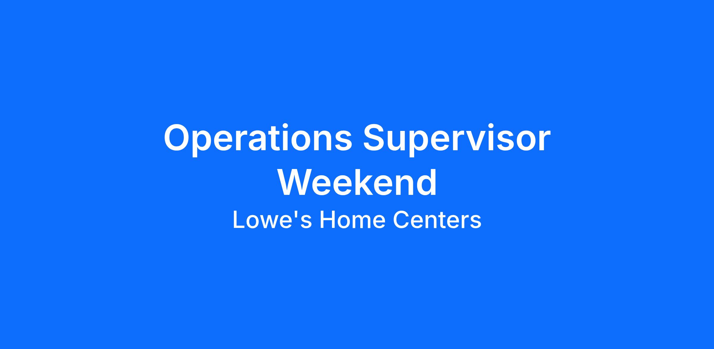 Operations Supervisor Weekend