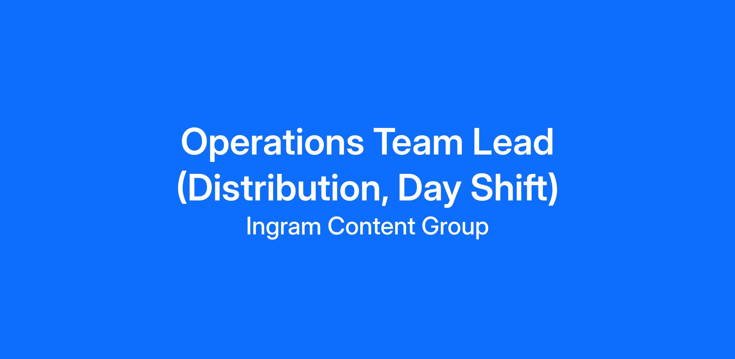 Ingram Content Group (ICG) is hiring for an Operations Team Lead to contribute to our Distribution team in Chambersburg, PA. An Operations Team Lead supports all operational and administrative activities required to run an operating department of major production environment. Serves as the lead person overseeing department or activity workflow. Acts as in leadership capacity in absence of the Supervisor.