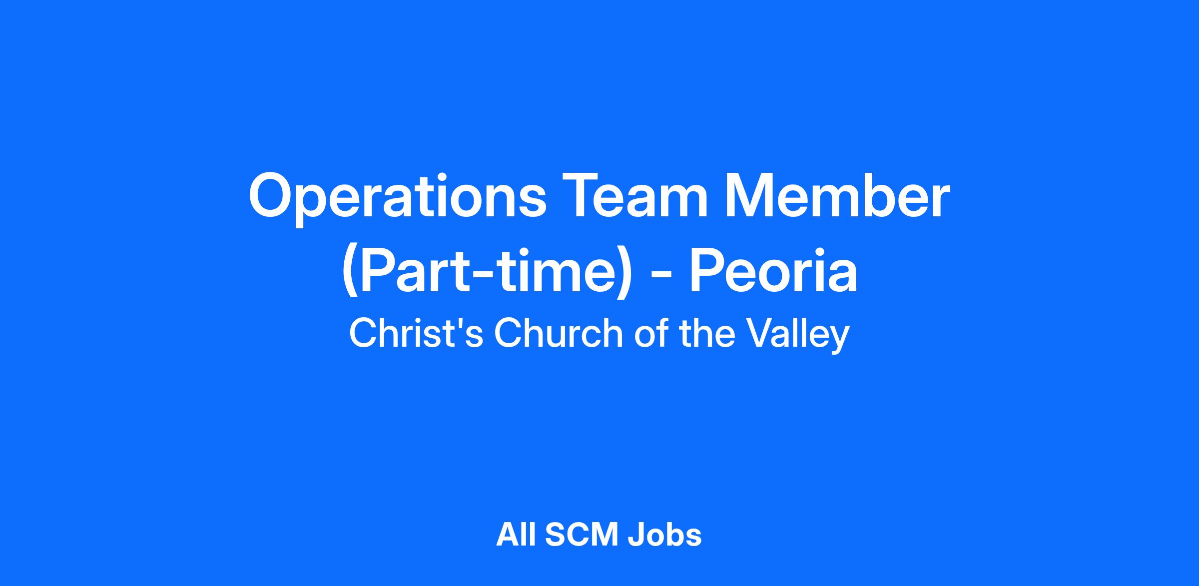 The purpose of the Campus Operations Department is to enhance CCV’s ability to be a destination point for the unchurched, promote fellowship for attendees and to support the staff in growing their ministries in the aspects of making people feel comfortable while on our campus. This purpose of this position is to assist in the overall operations of the Peoria Campus with an emphasis on the execution of day to day tasks.