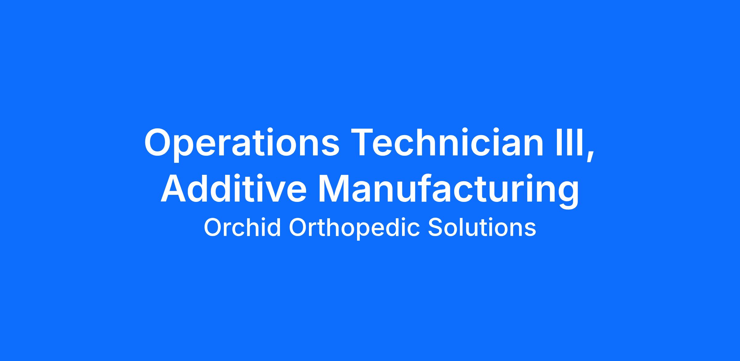 The Operations Technician III, Additive Manufacturing is responsible for tasks associated with Additive Manufacturing (AM), working directly with AM Engineers and Site Management, and as-needed Innovations teams. He/she will be responsible for running AM machines, and all upstream and downstream operations, thereof, as outlined below. The Operations Technician III, Additive Manufacturing works directly under the guidance of an AM Engineer or Site Engineering Manager.